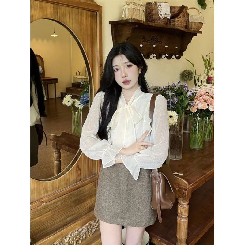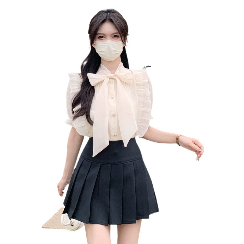 | nameOriginal | Gentle Style Bow Ruffled Bubble Sleeve Shirt Women's 2024 Summer New Trendy All-match Slimming Top |