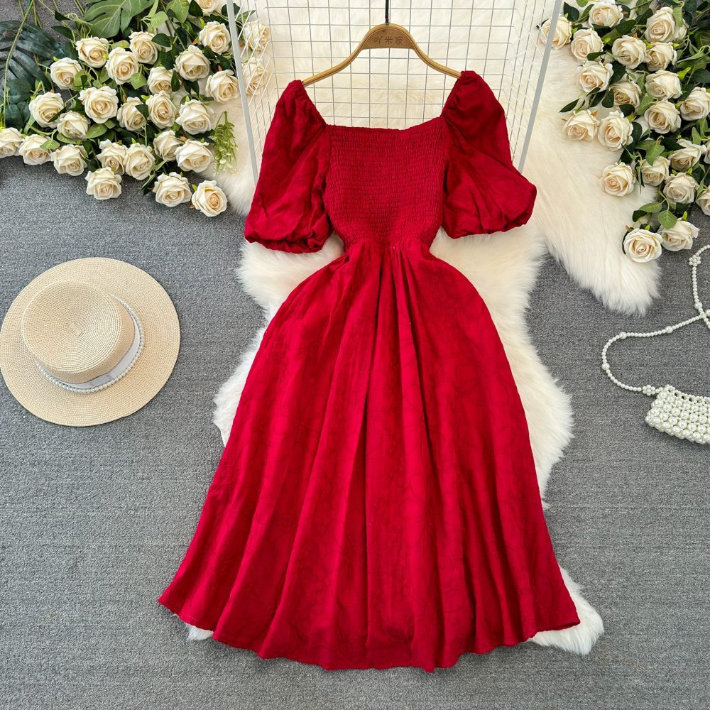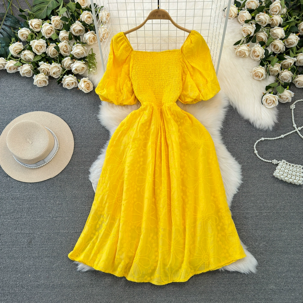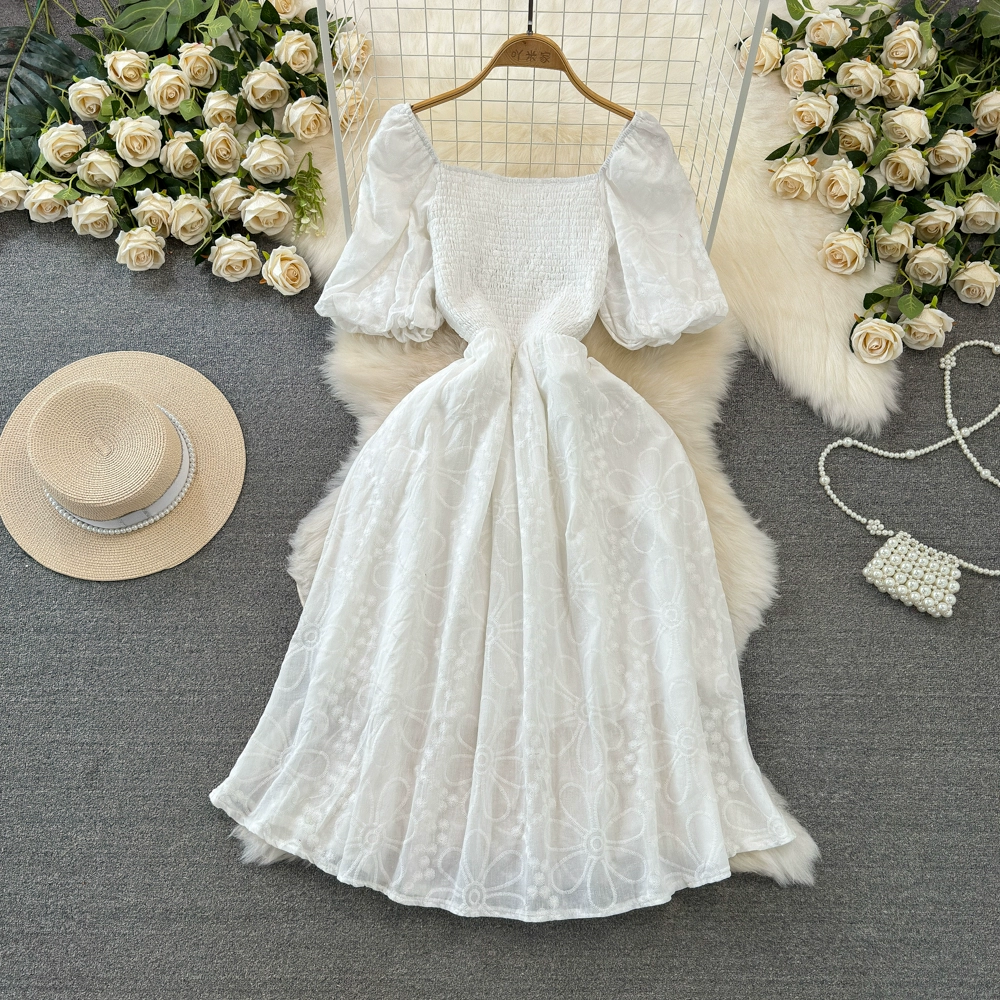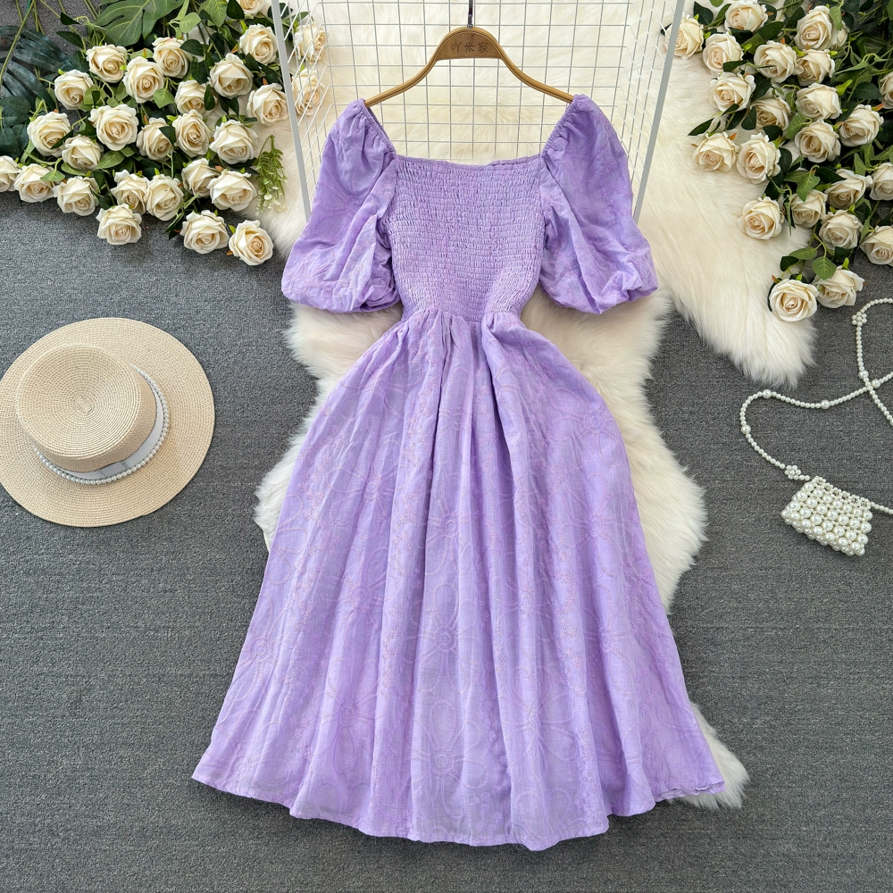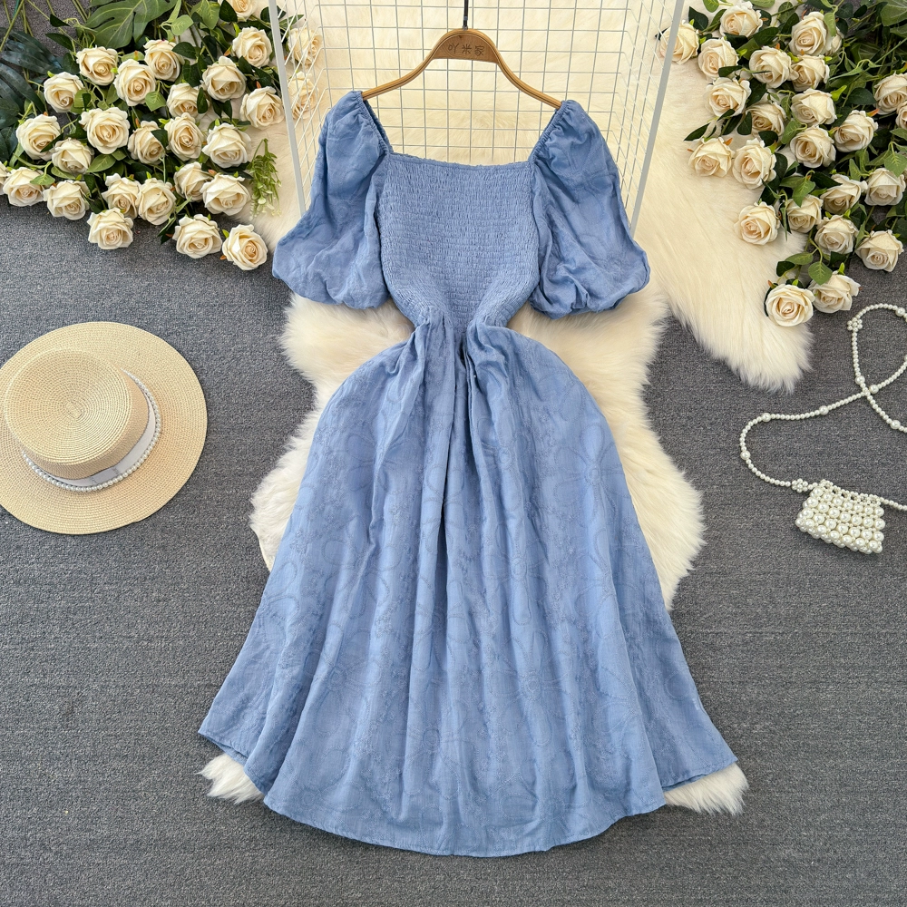 Gentle wind bubble waist embroidered dress short sleeves