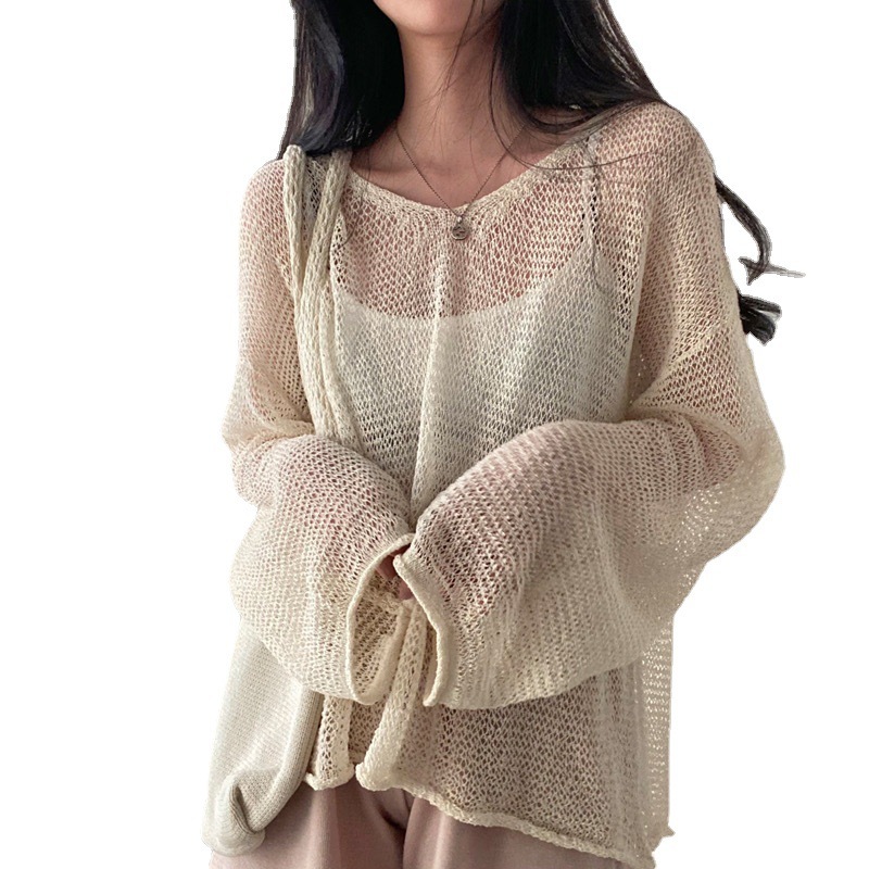 | nameOriginal | Gentle Style Hollow-out Knitted Sweater Women's Summer Thin Loose Design Sense Chic Top with Long Sleeve Overshirt Sunscreen Clothes |
