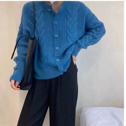 | nameOriginal | Gentle style loose twist thickened knitted cardigan 2023 autumn and winter New simple artistic lazy style sweater coat |