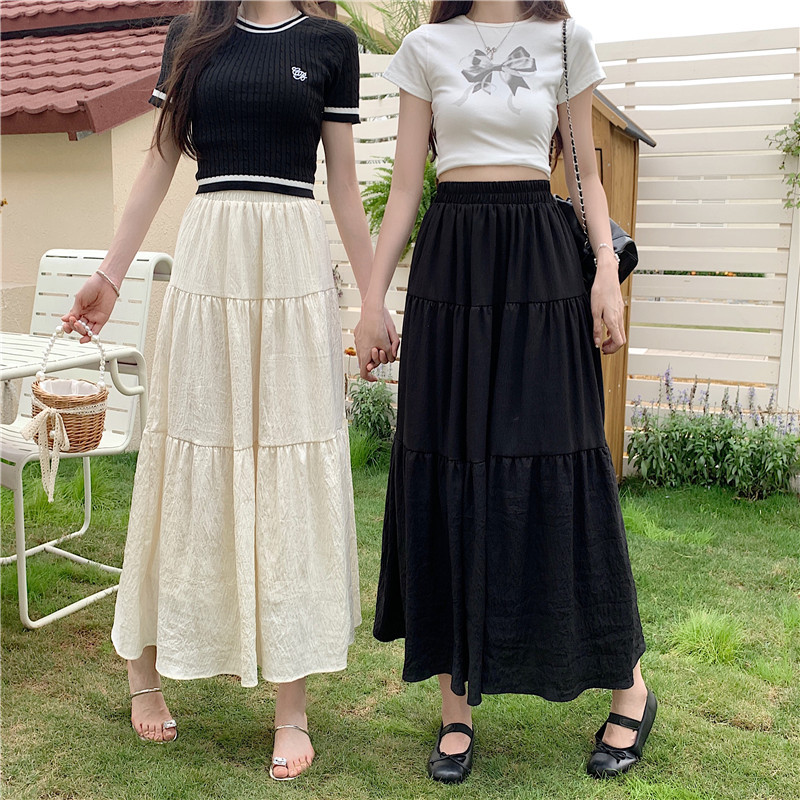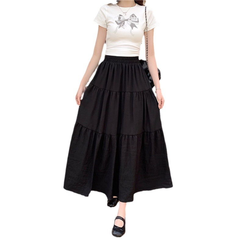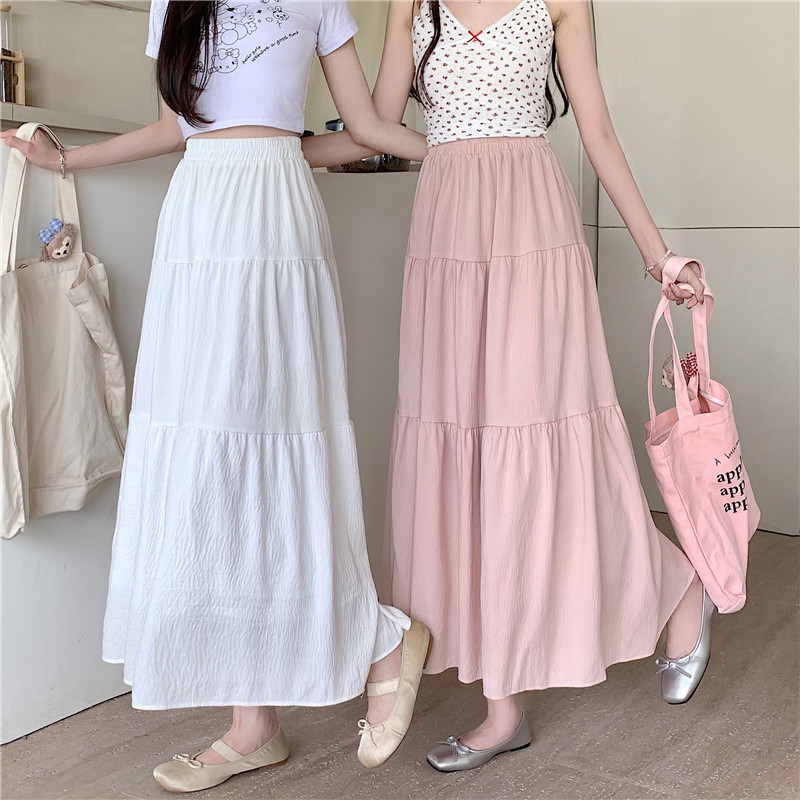 | nameOriginal | Gentle Style Pink Skirt Women's Spring and Summer High Waist Mid-length Skirt Slimming All-match A- line Skirt Ice Silk Wrinkle Long Skirt |