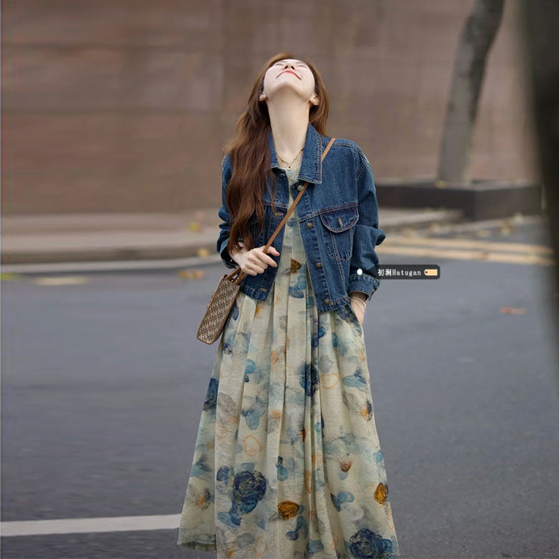 | nameOriginal | Gentle Style Retro Hong Kong Style Casual Fashion Age-reducing Printed Dress Summer New Suit Women's Denim Jacket Trendy |