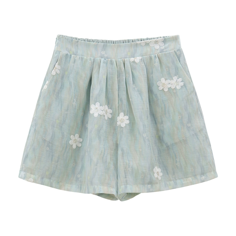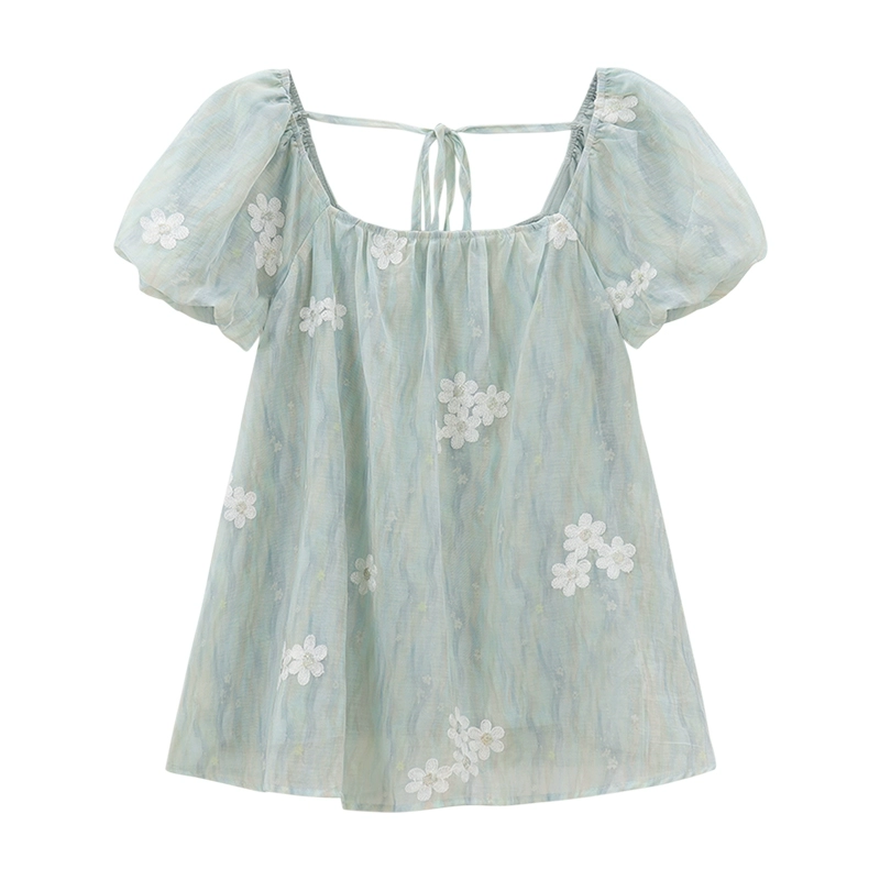 Gentle style square collar shirt high waist wide leg casual short sleeves