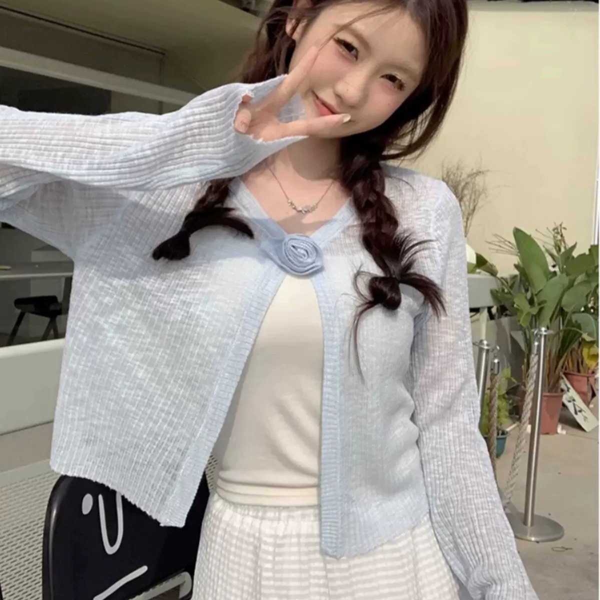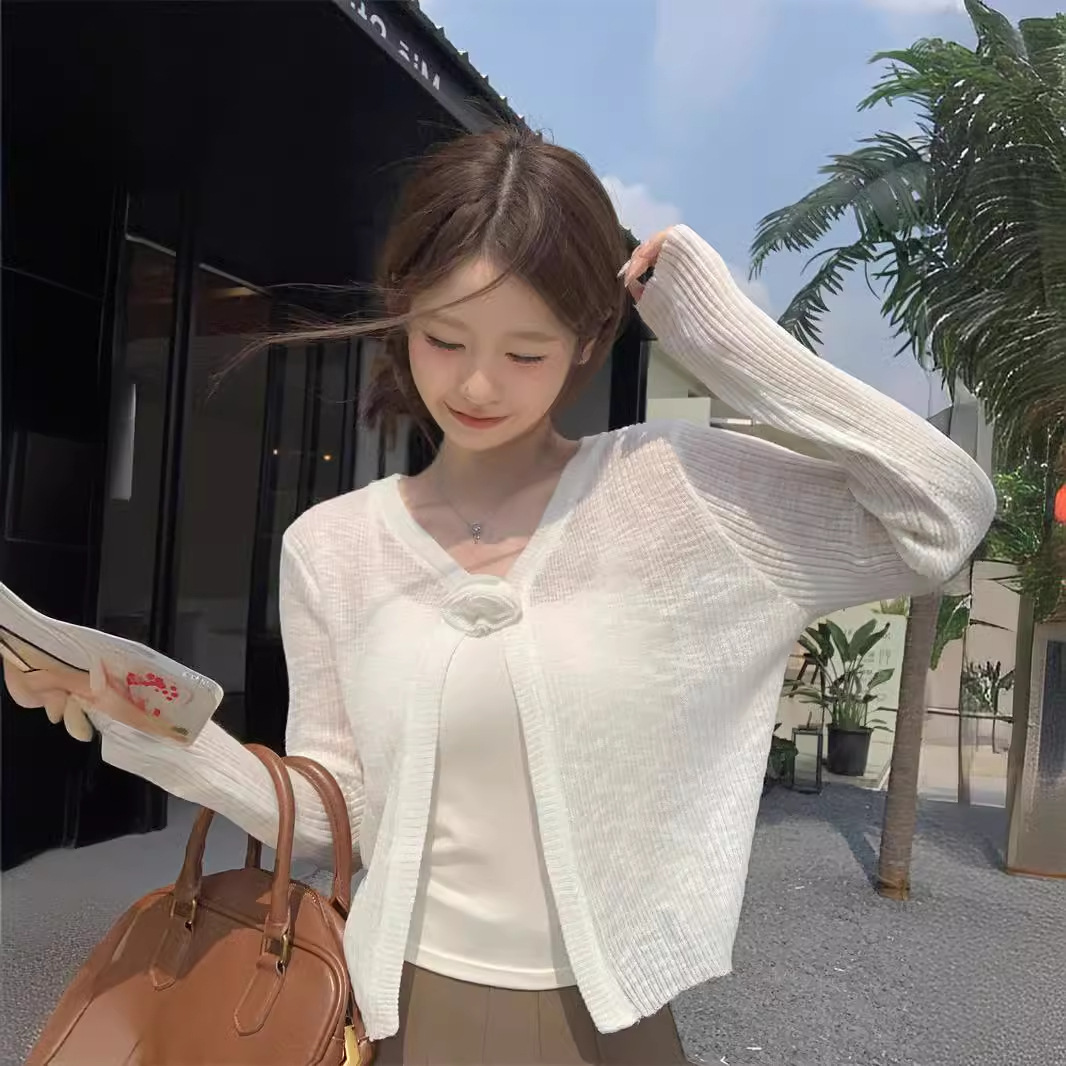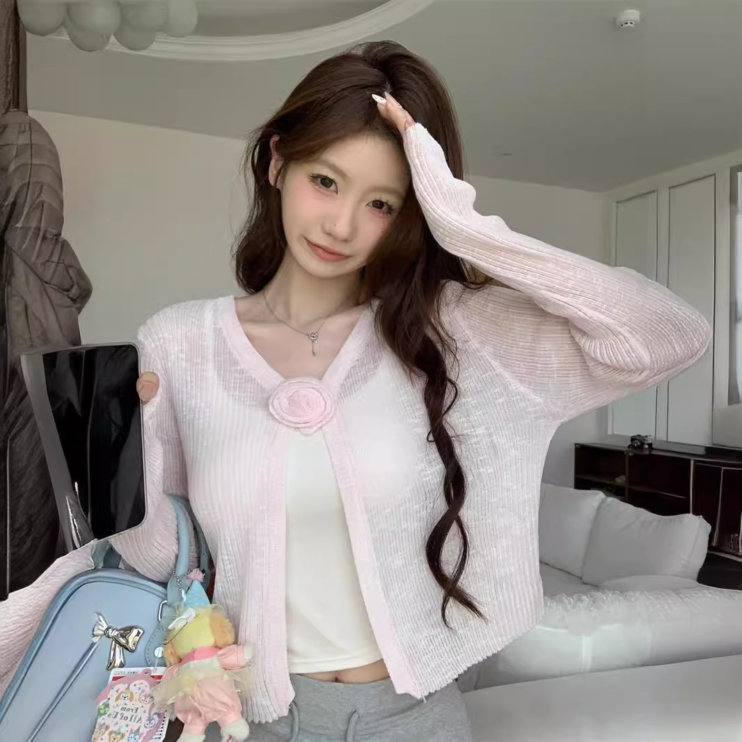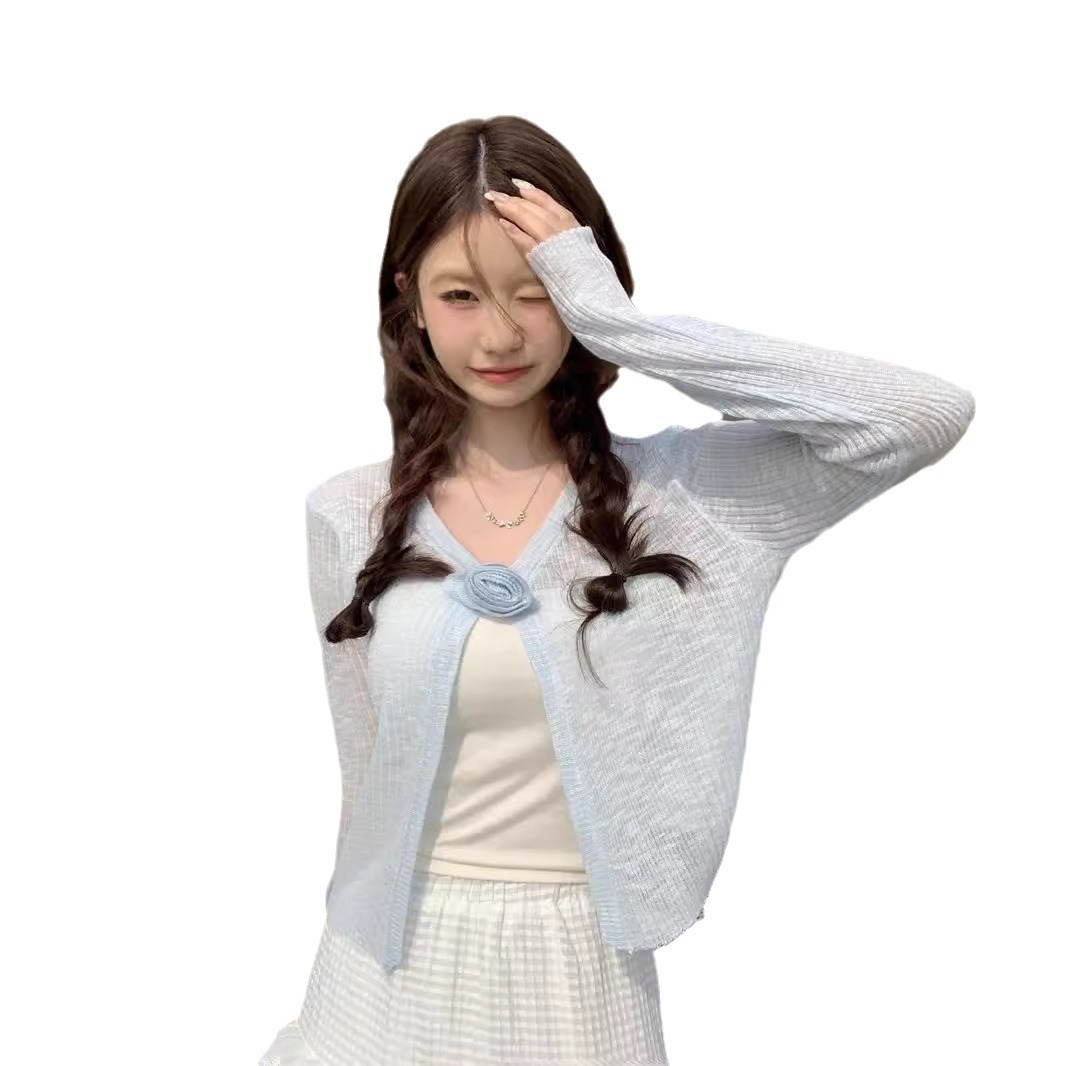 | nameOriginal | Gentle Style Three-dimensional Flower Long-sleeved Sweater Women's Summer Design Sense Slim-fit Short Sunscreen Cardigan Casual Top |