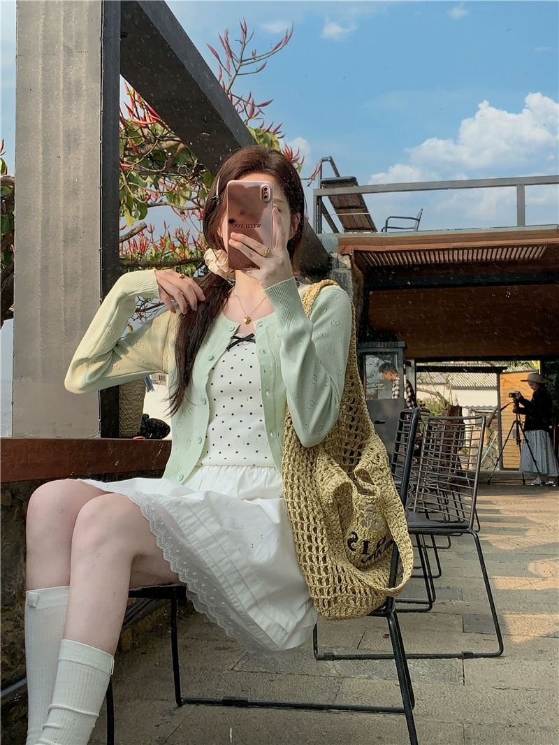 | nameOriginal | Gentle style women's summer wave green sweet and spicy knitted cardigan |