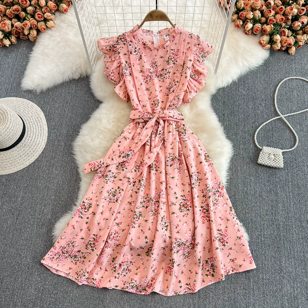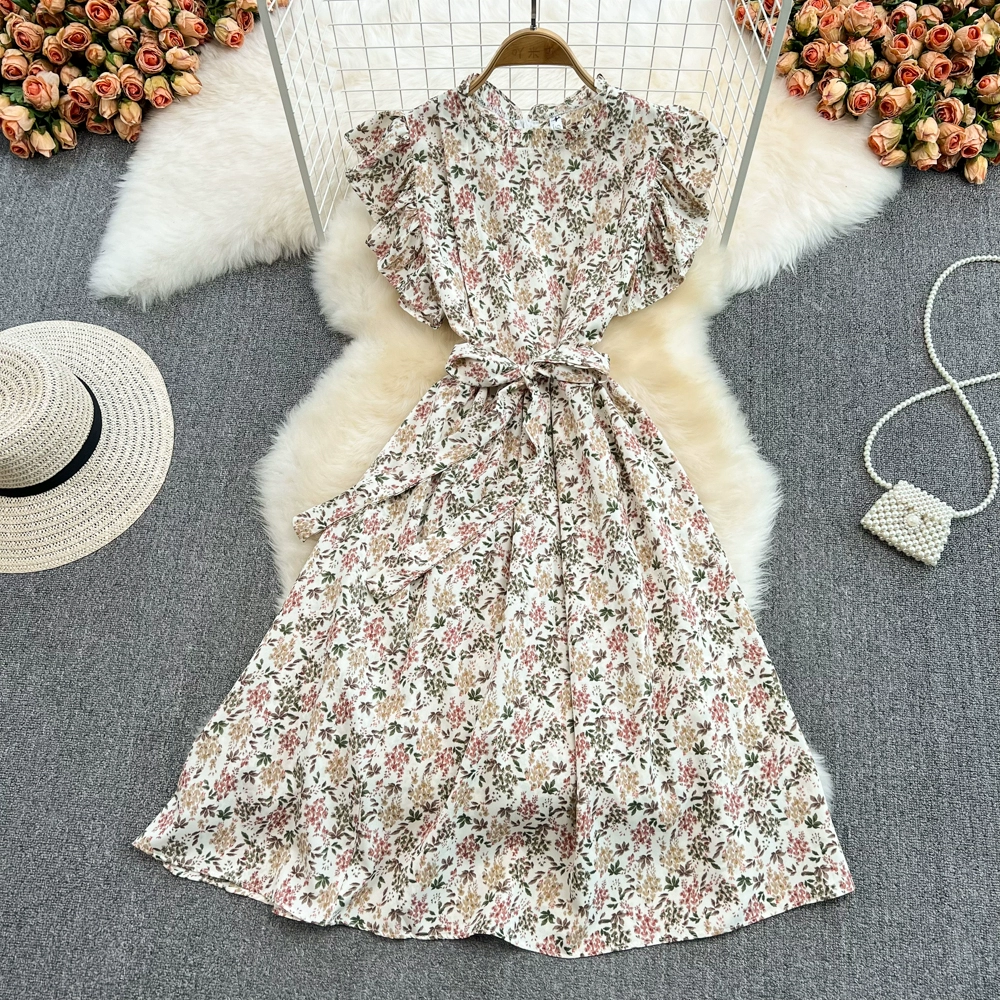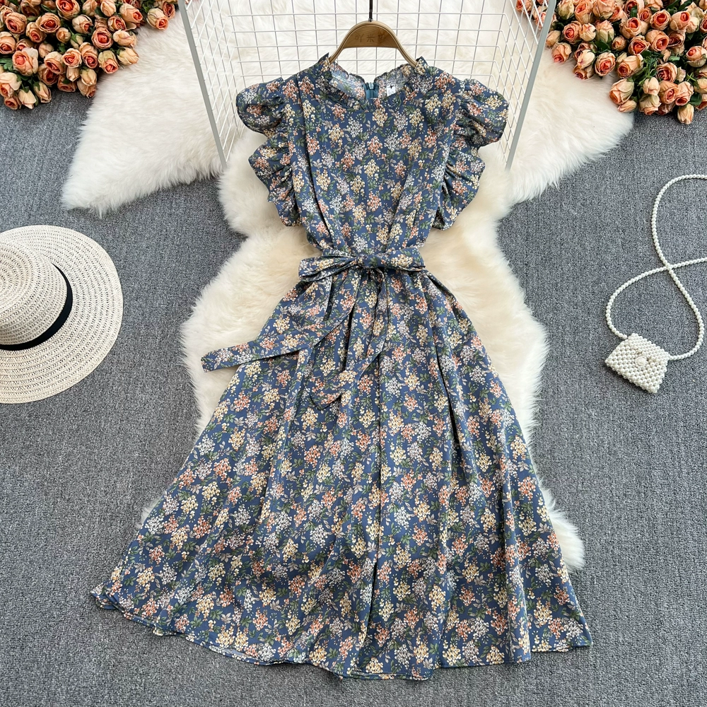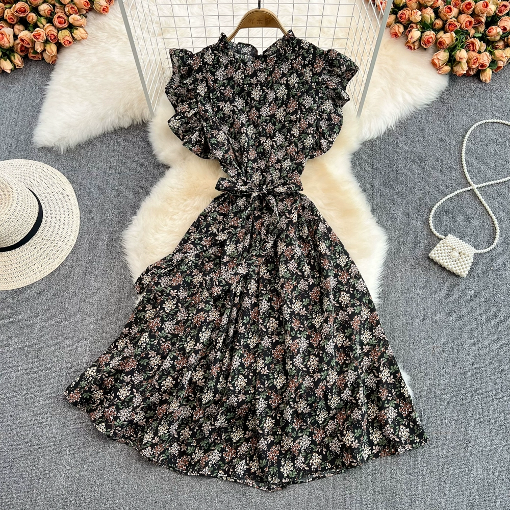 | nameOriginal | Gentle summer style chiffon dress with earrings and stand collar |