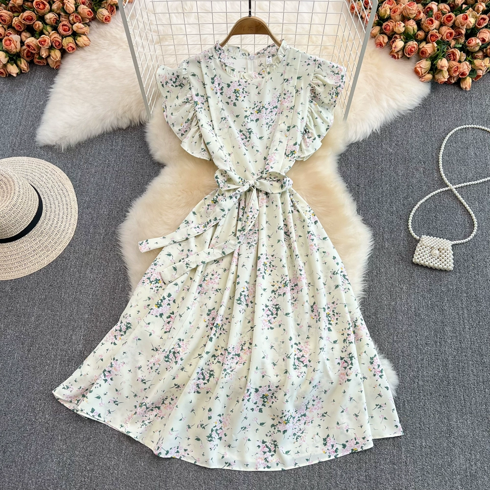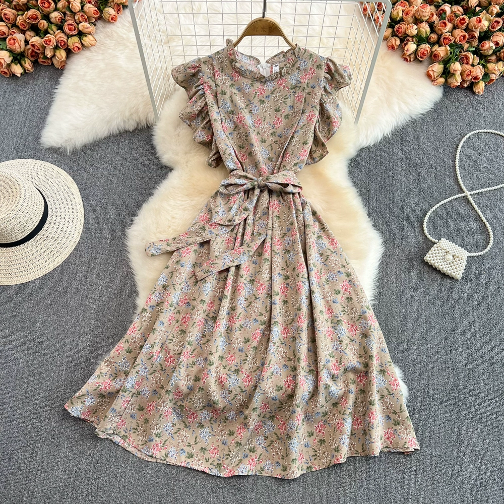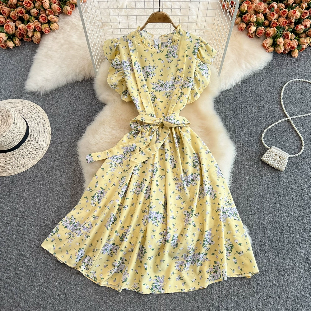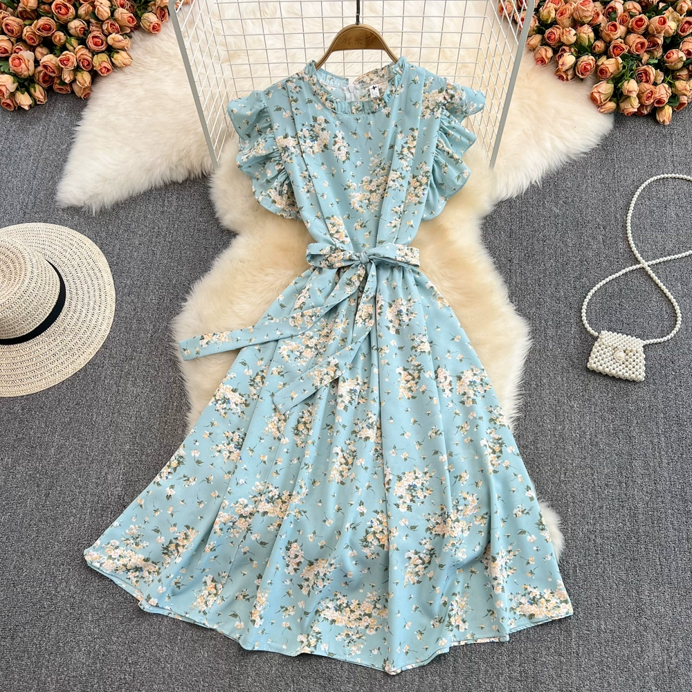 | nameOriginal | Gentle summer style chiffon dress with earrings and stand collar |