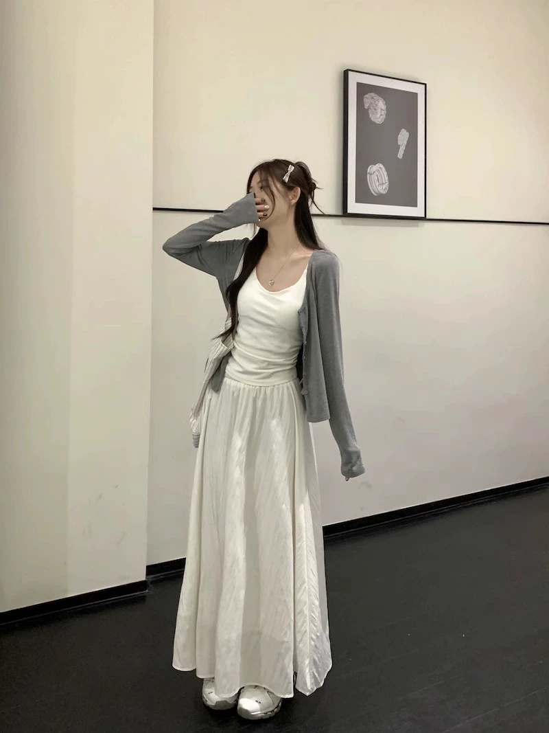 | nameOriginal | Gentle white languid drape pleated skirt |