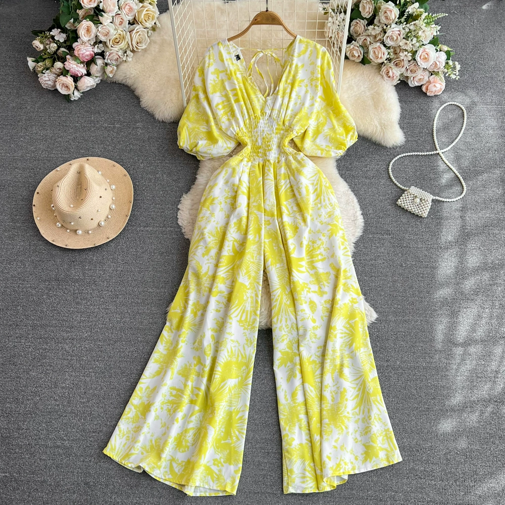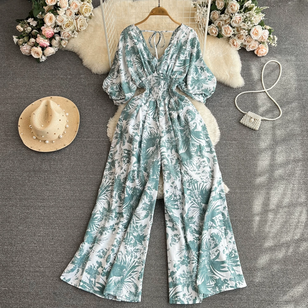 | nameOriginal | Gentle wind bubble V-neck casual high waist printed short sleeves |