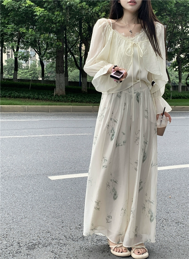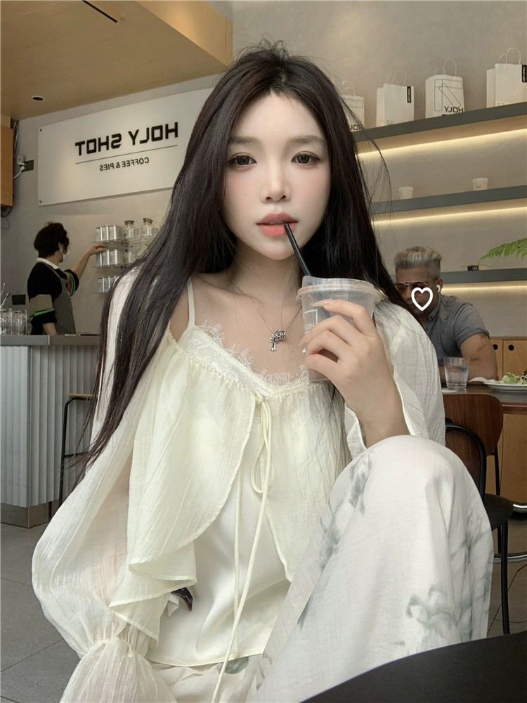 Gentle women's summer strappy lace two-piece blouse