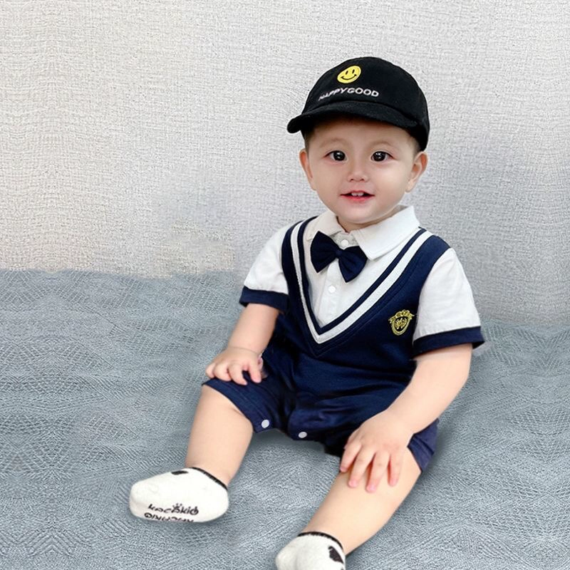 | nameOriginal | Gentleman baby jumpsuit short-sleeved thin pure cotton baby boy full-month clothing summer clothing newborn one-year-old dress fashionable |