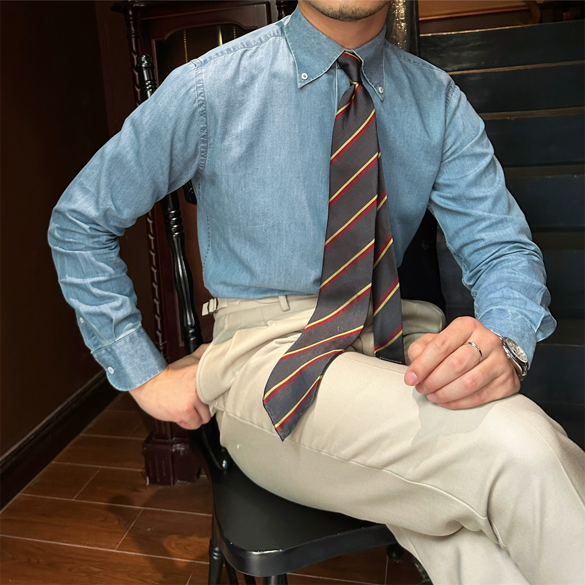 | nameOriginal | Gentleman's petty bourgeoisie casual long-sleeved Tencel cotton denim shirt |