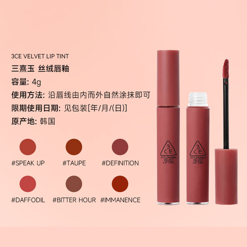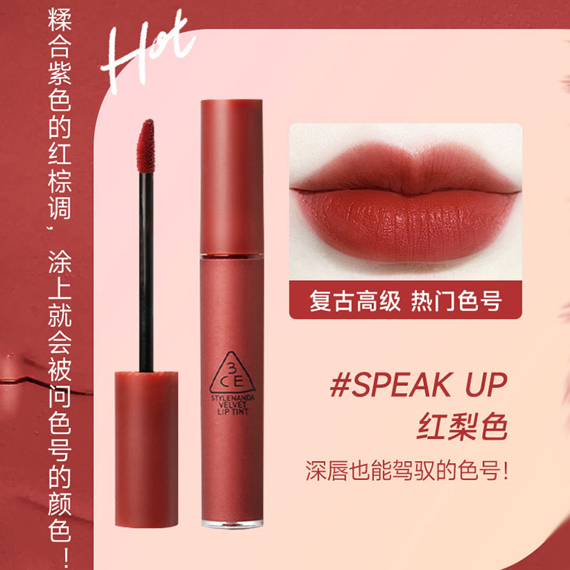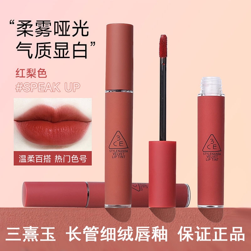 genuine goods 3CE Lipstick Velvet Fog Lip Glaze Women’s White Moisturizing Matte Moisturizing Mousse Student Lip Gloss Clay