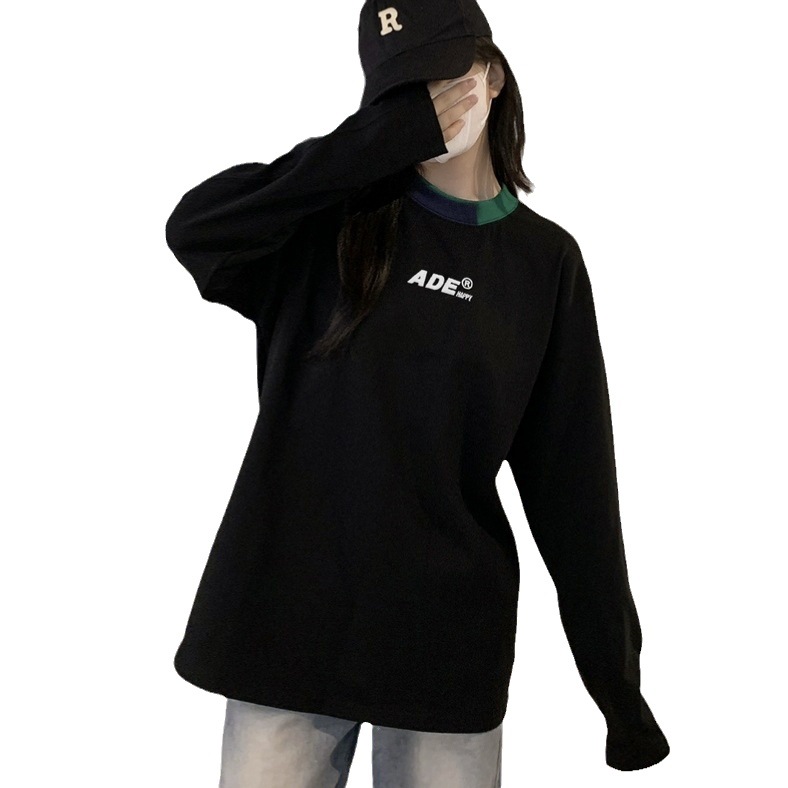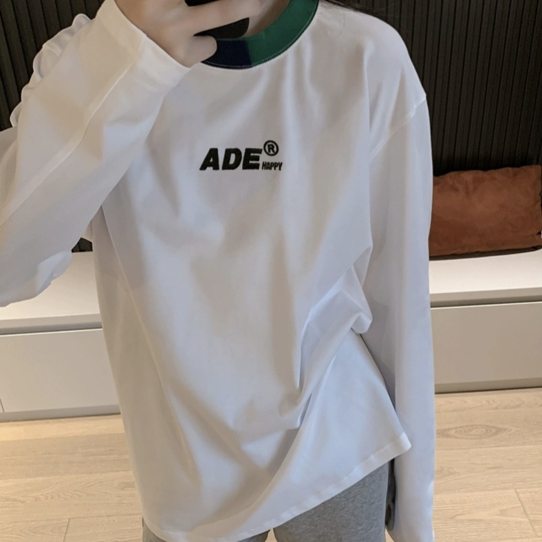 | nameOriginal | Genuine goods ADER new contrast color neckline embroidered letter long sleeve T-shirt autumn loose men's and women's niche fashion brand top |