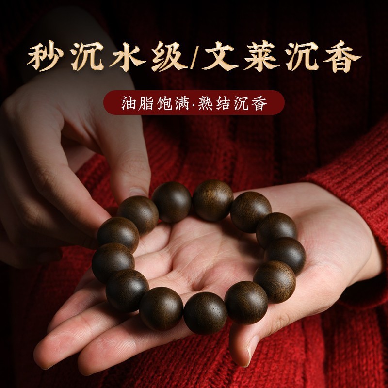 Genuine goods Fidelity Brunei soft silk agarwood bracelet natural submerged black oil old material Buddha beads Qi Nan bracelet for men and women