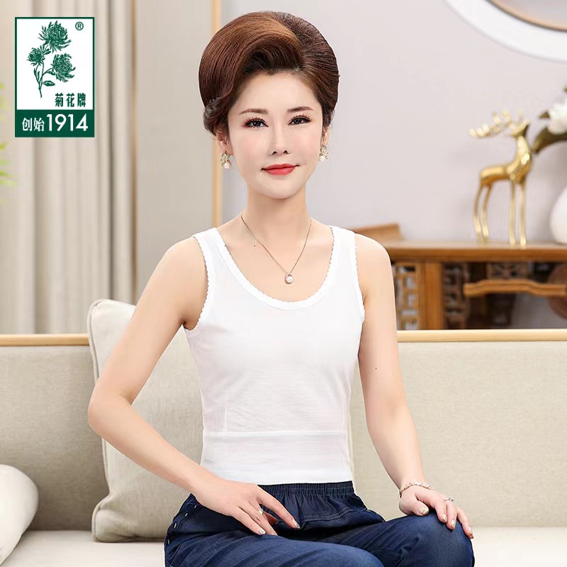 | nameOriginal | Genuine goods Shanghai chrysanthemum brand women's vest middle-aged and elderly pure cotton jersey curved tooth camisole women's vest mother vest |