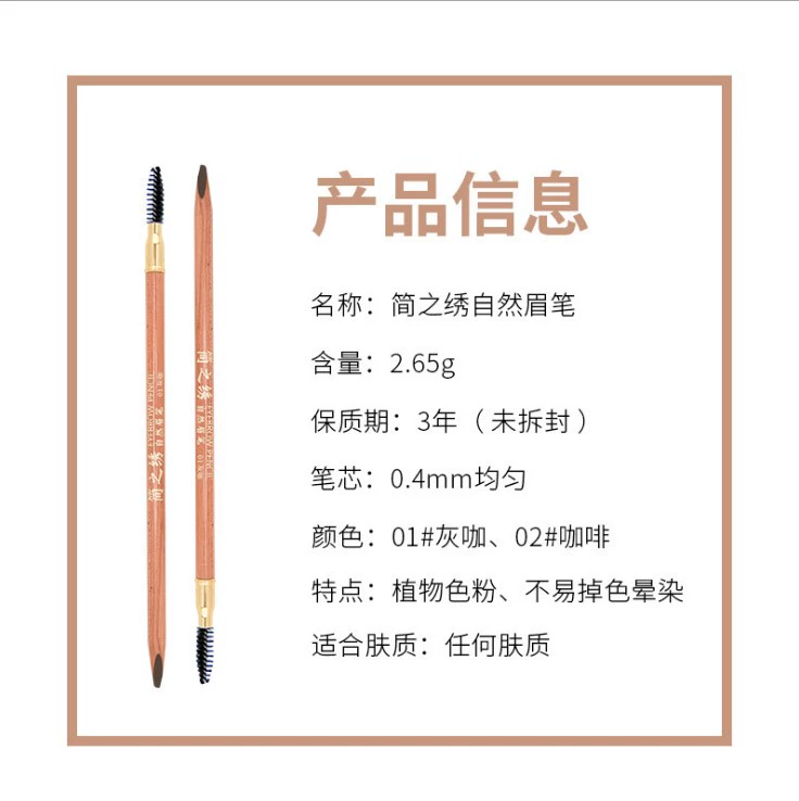 | nameOriginal | Genuine Jianzhixiu Natural Waterproof Eyebrow Pencil Anti-fade Double-ended Anti-numbing Pen Ingenious Jianzhixiu Eyebrow Pencil Texture Embroidery Color Material |