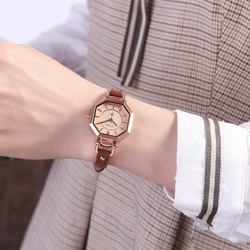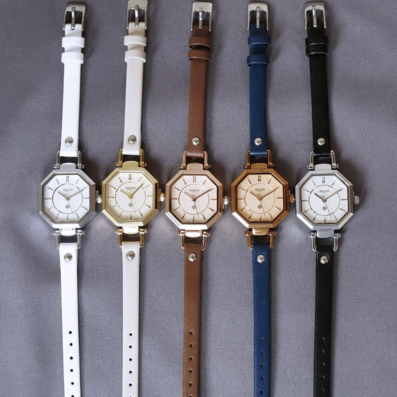 Genuine Julishi black and white belt women's watch polygonal unique trendy fashion personality ladies watch for female students