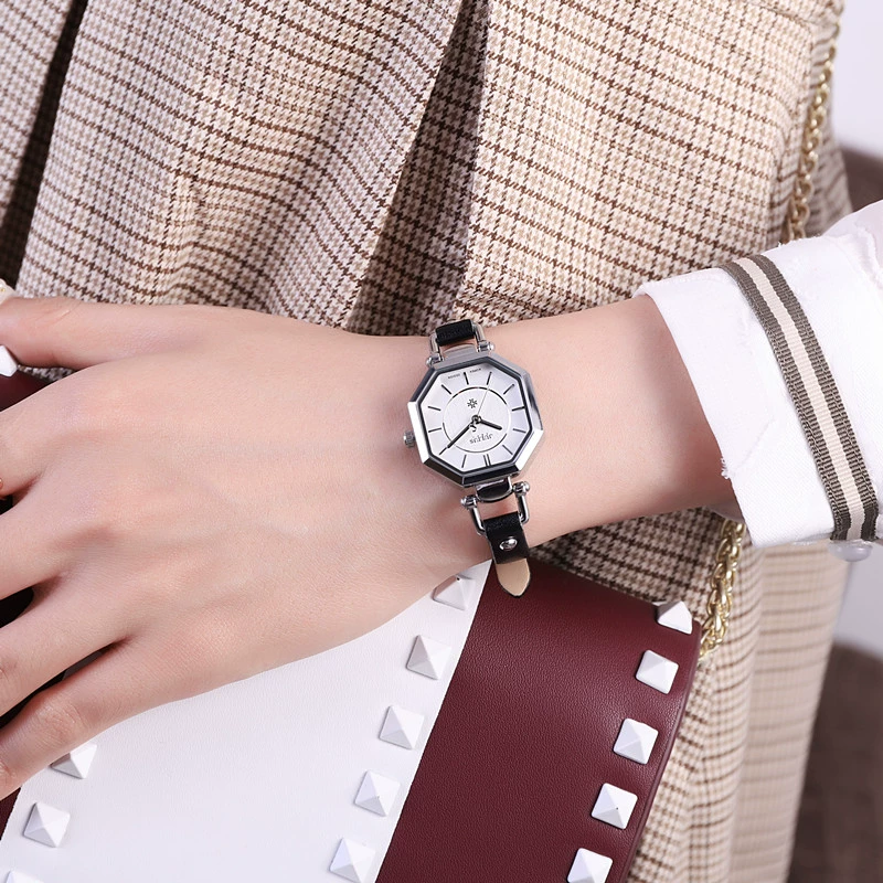 Genuine Join Black and White Belt Woman Watch Multilateral Symptoms, Fashion Personal Personality Women’s Watch Girl Student