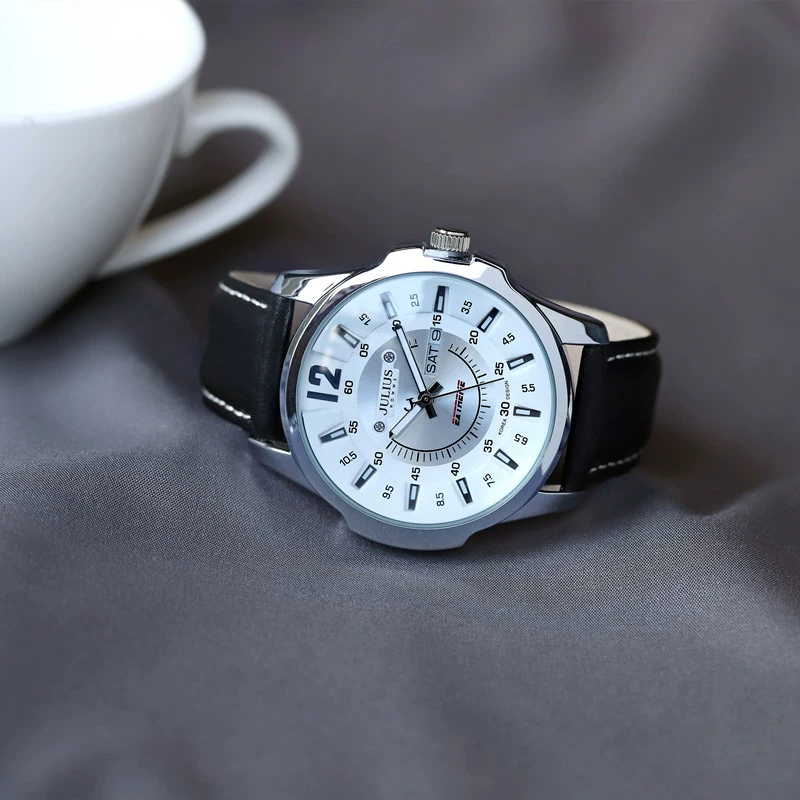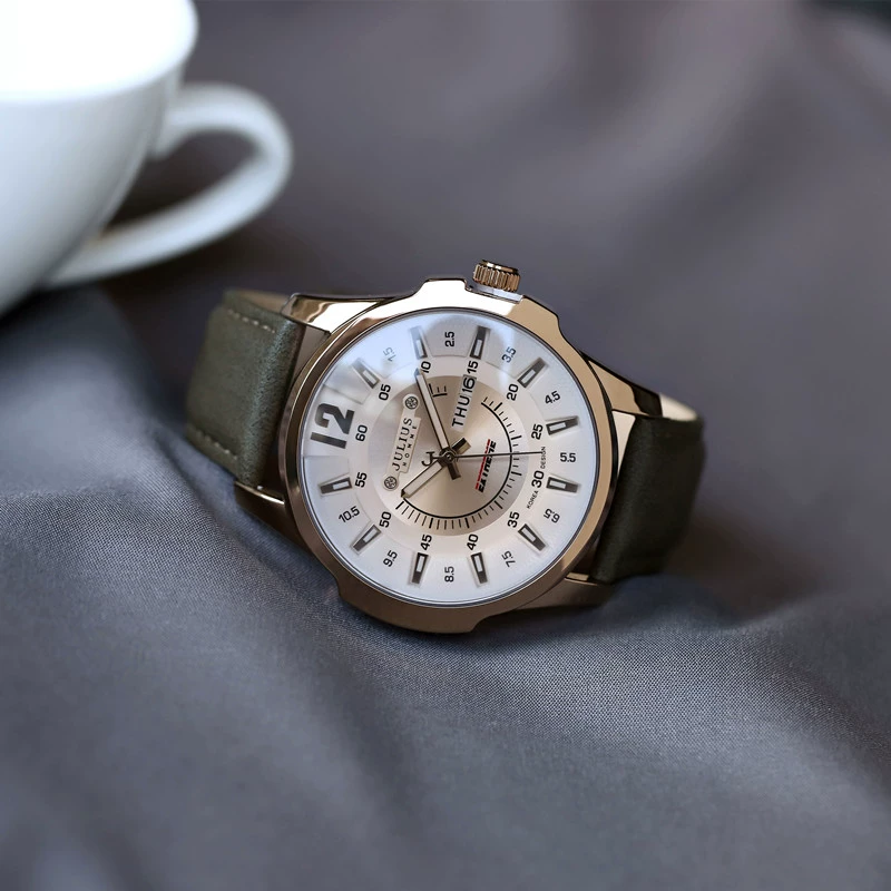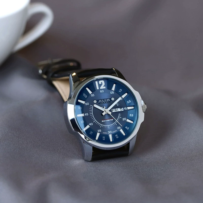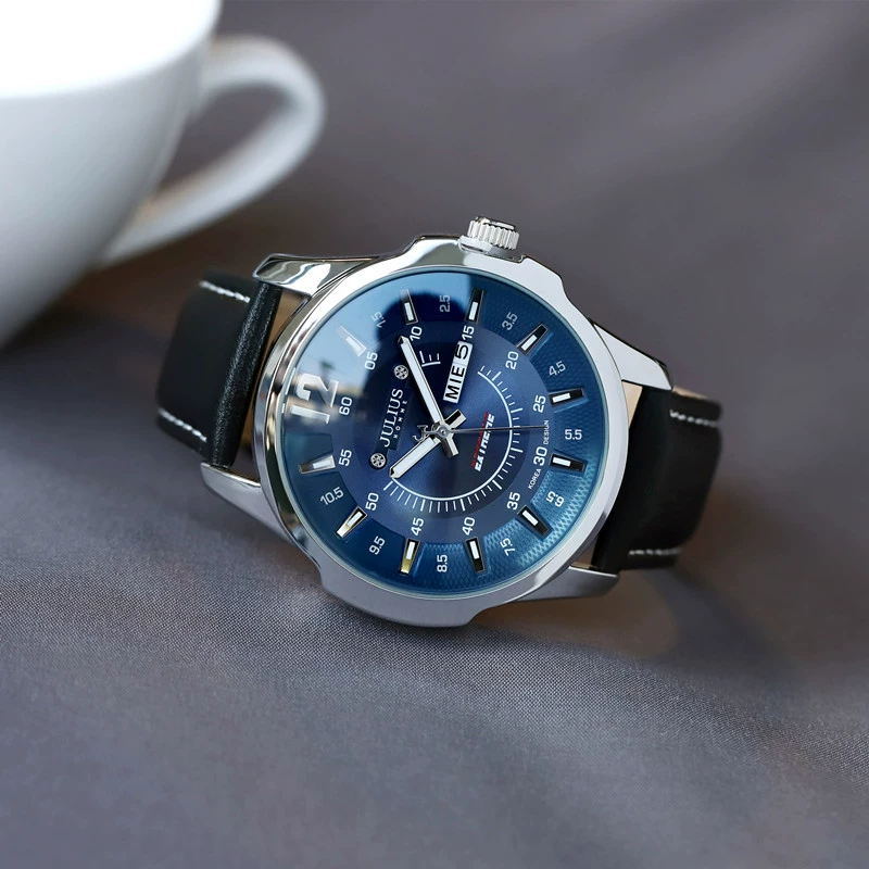 Genuine Julishi trendy men's watch large dial quartz watch waterproof luminous belt week calendar men's watch