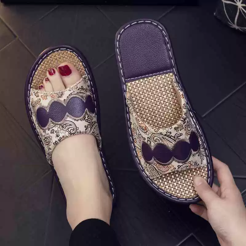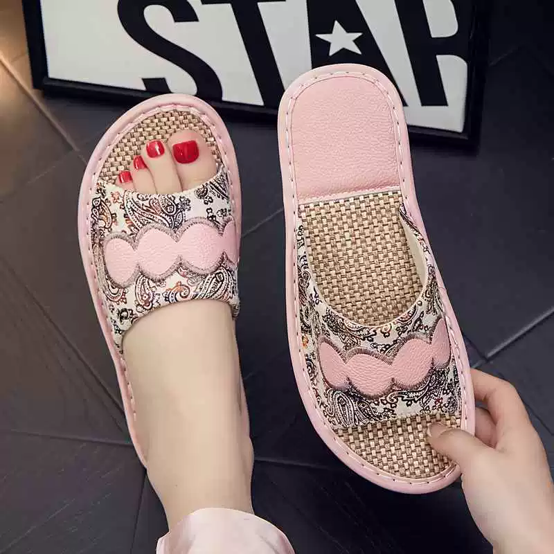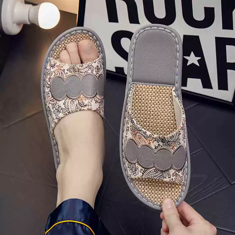 | nameOriginal | Genuine leather and linen indoor anti-slip soft sole all-season slippers |