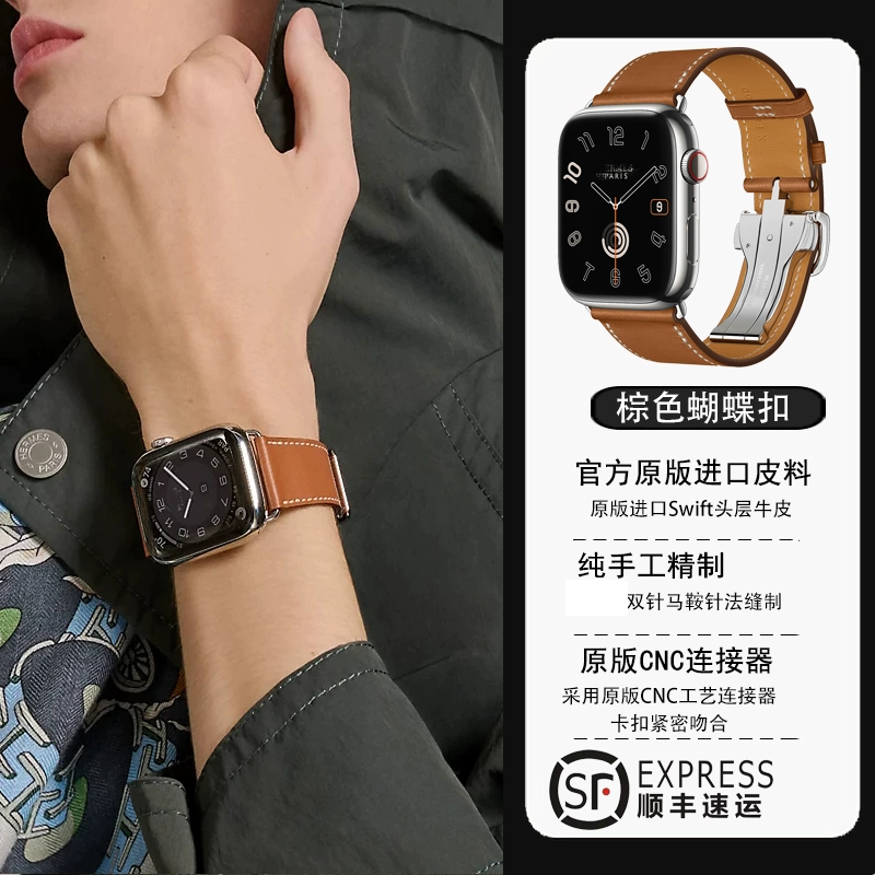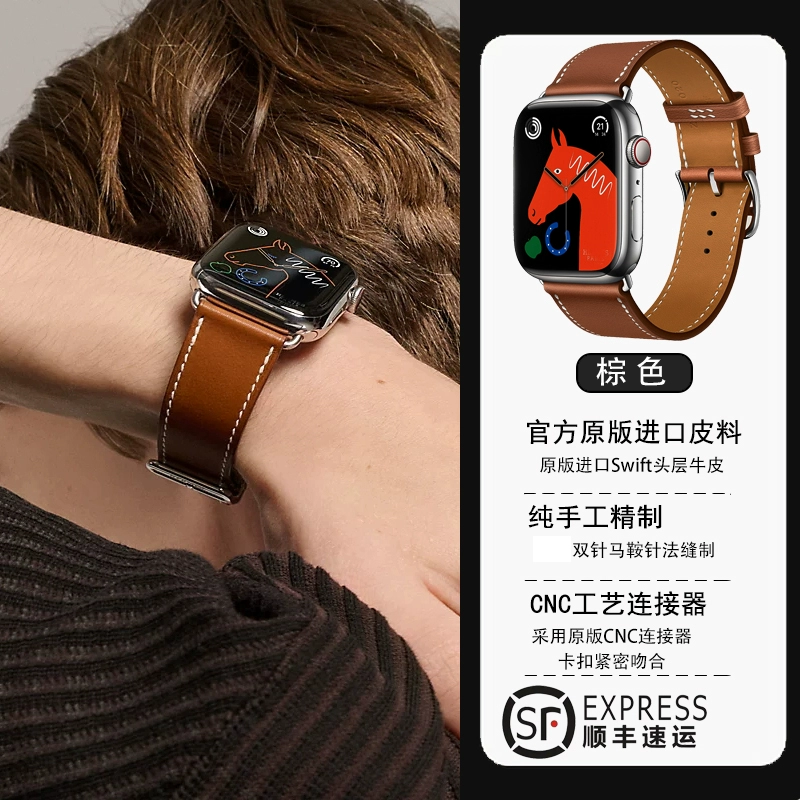Apple is suitable for Hermes genuine leather apple strap