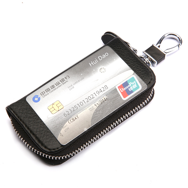 Genuine Leather car key case men’s and women’s cowhide key chain large capacity zipper key card holder