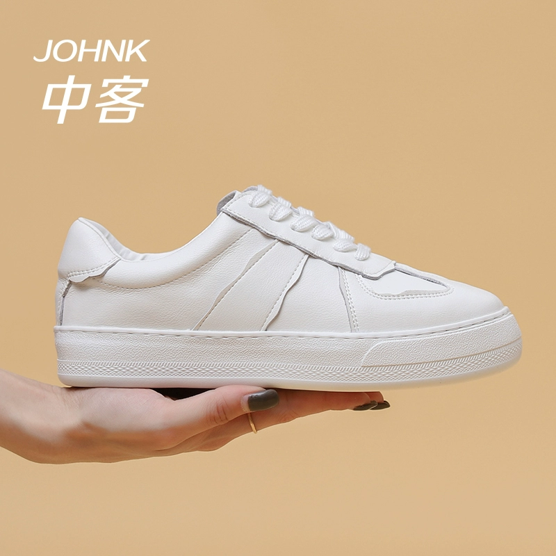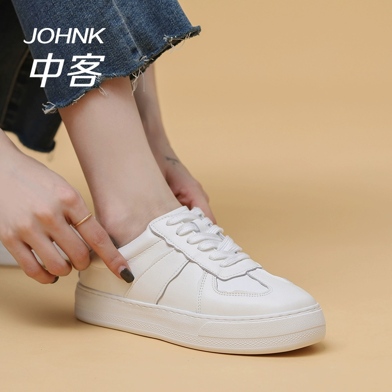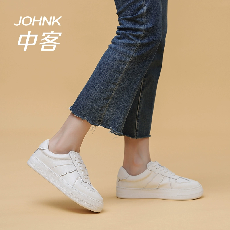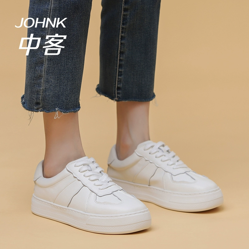 Genuine leather casual shoes for women, versatile mid-heeled comfortable lace-up sneakers 2024 spring and autumn new style cowhide sports white shoes