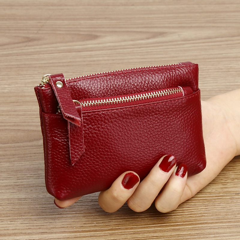 Genuine leather coin purse women’s small mini cowhide mother’s zipper key thin small wallet coin small coin bag