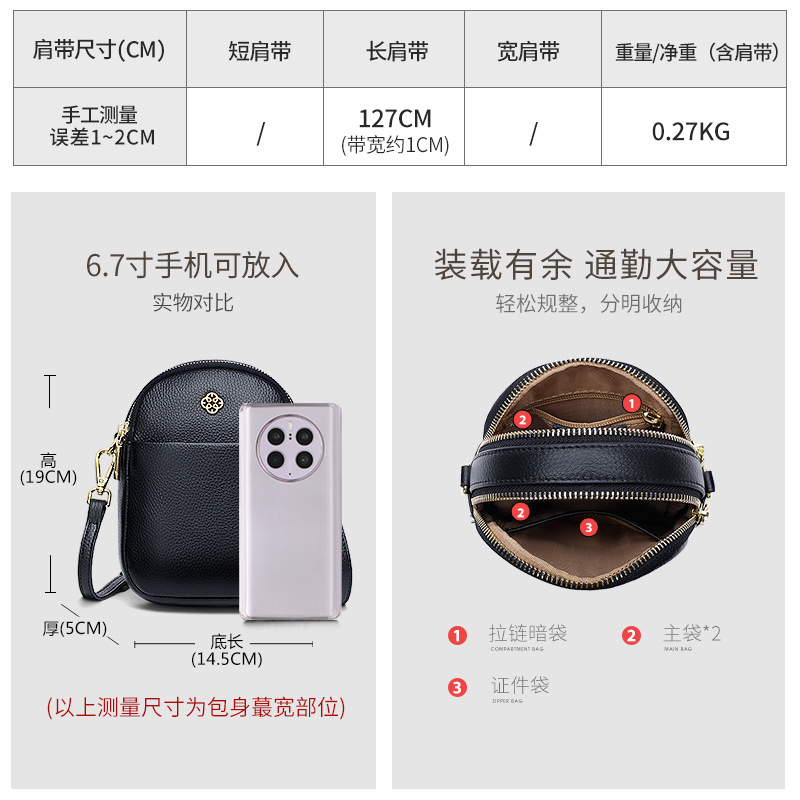 | nameOriginal | Genuine Leather Double Layer Women's Crossbody Bag Small 2024 New All-match Casual Change Shoulder Bag Mini Mobile Phone Bag |