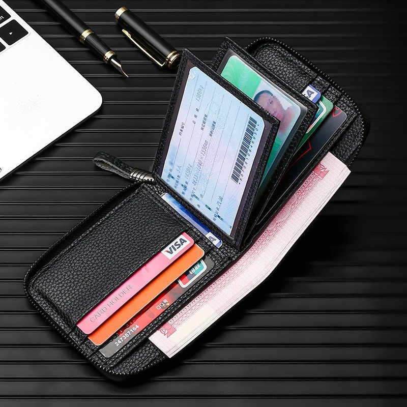 Genuine Leather Driver’s License Leather Case Men’s Wallet Short Multi-Card Multi-Function Card Bag Certificate Bag All-in-One High-End Bag for Women