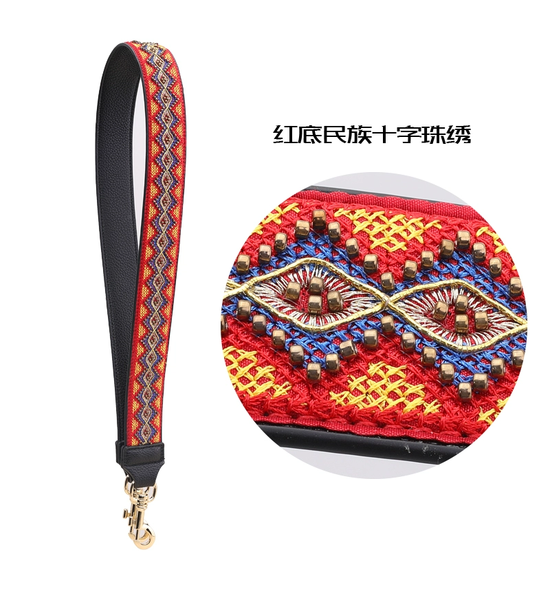 Genuine leather embroidered new sequined crossbody women's bag strap