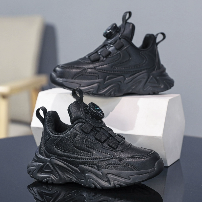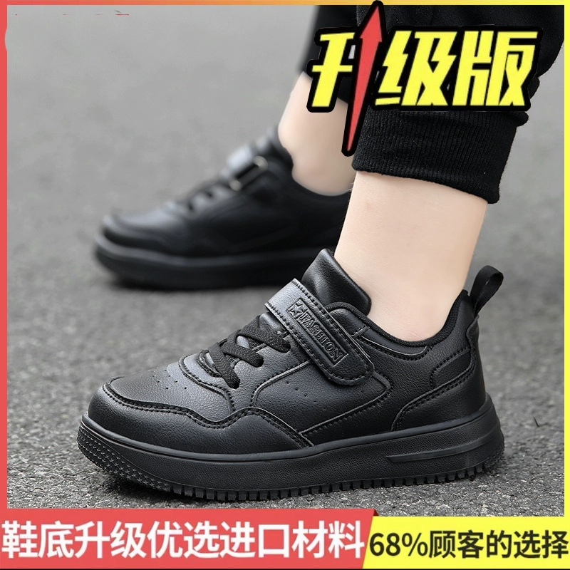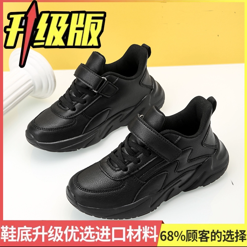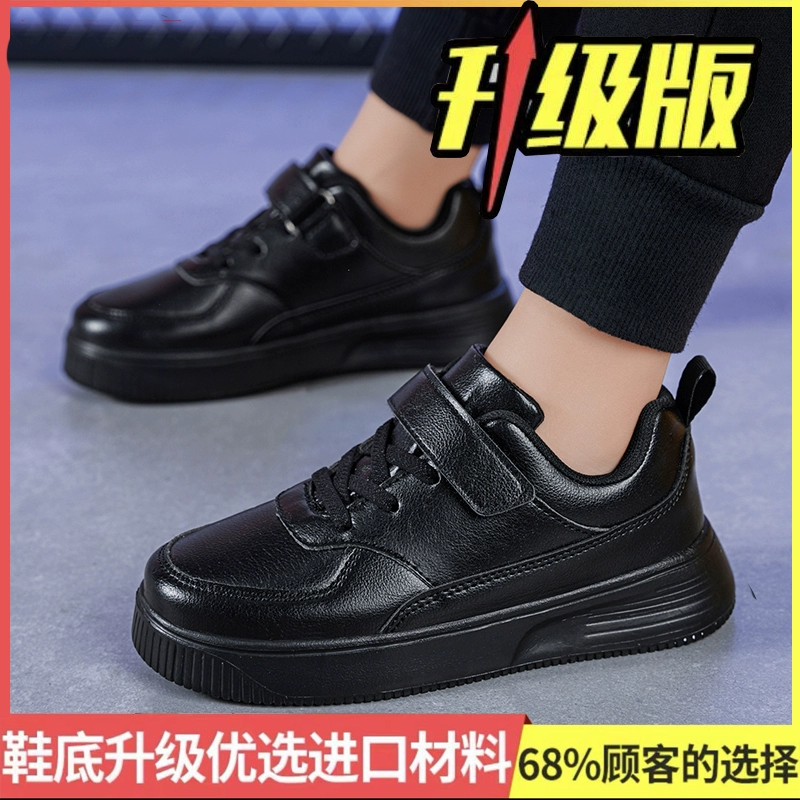 Genuine leather fashionable spring and autumn boys' waterproof black shoes