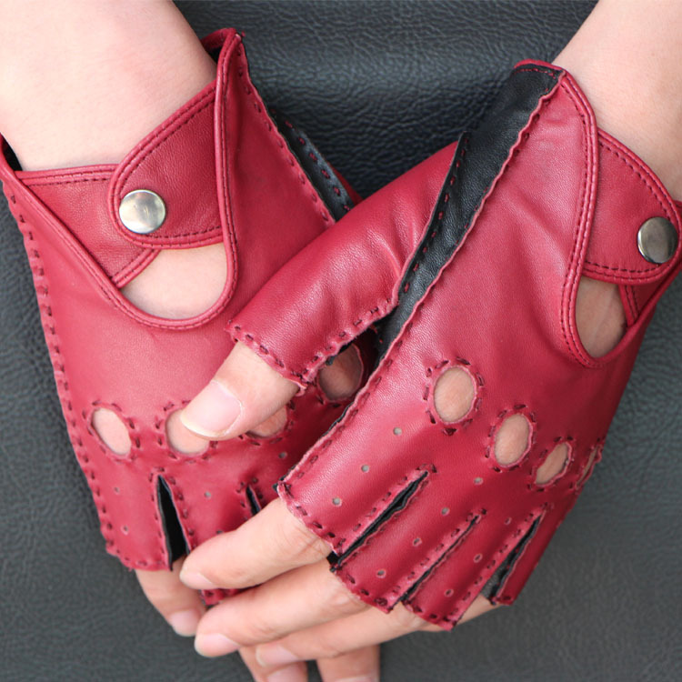| nameOriginal | Genuine Leather Half-Finger Gloves for Men and Women Locomotive Autumn and Winter Thin Breathable Non-Slip Driving Outdoor Imported Sheepskin Finger Half-Red |