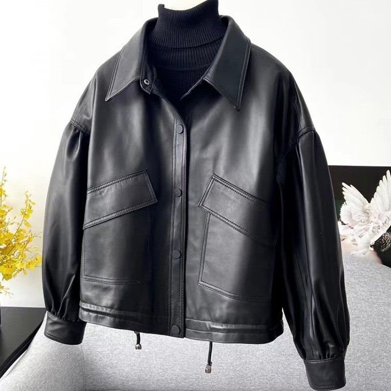 | nameOriginal | Genuine Leather Jacket European 2023 Spring New Women's Short Loose Casual Jacket Cotton Jacket Factory Independent Station |