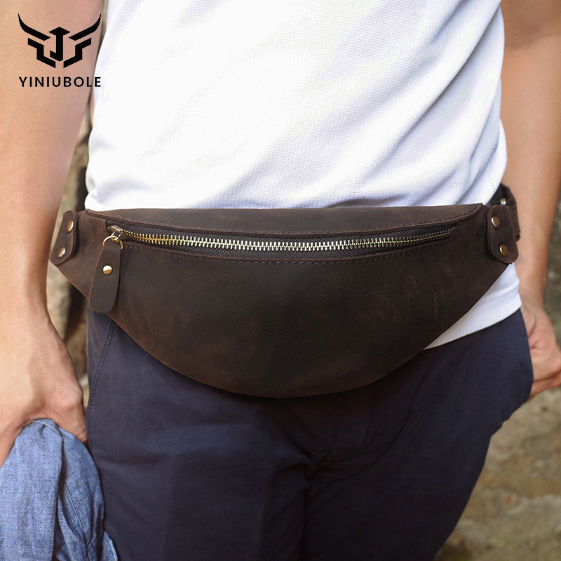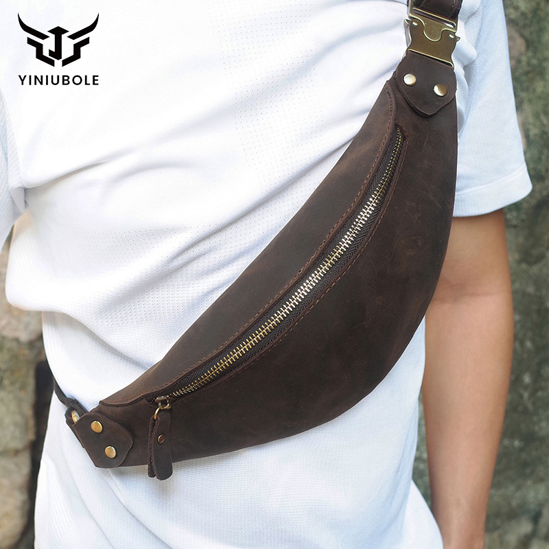 Genuine leather men’s crossbody chest bag Outdoor Sports men’s retro waist bag large capacity closed-toe layer cowhide chest bag