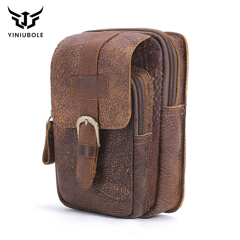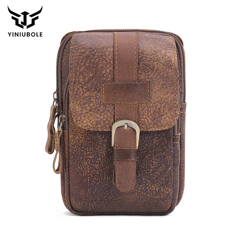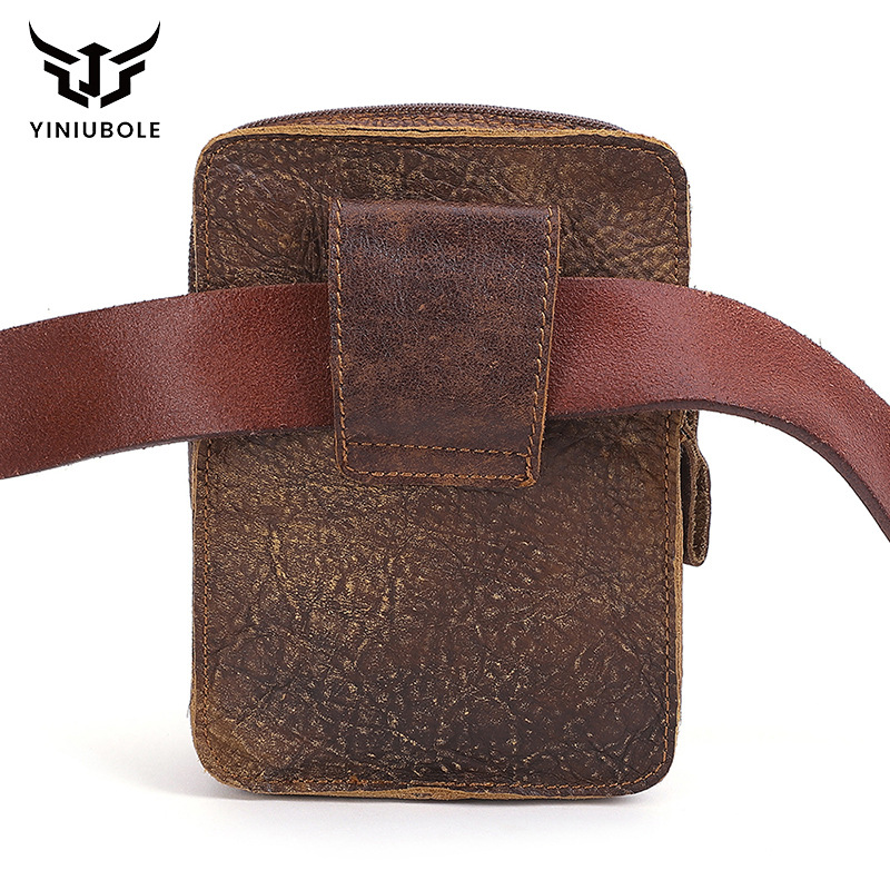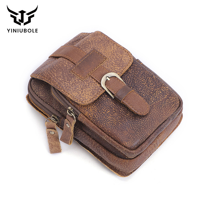 Genuine Leather Men’s Mobile Phone Waist Bag Simple Men’s Working Waist Bag Top Layer Cowhide Men’s Waist Mobile Phone Men’s Bag