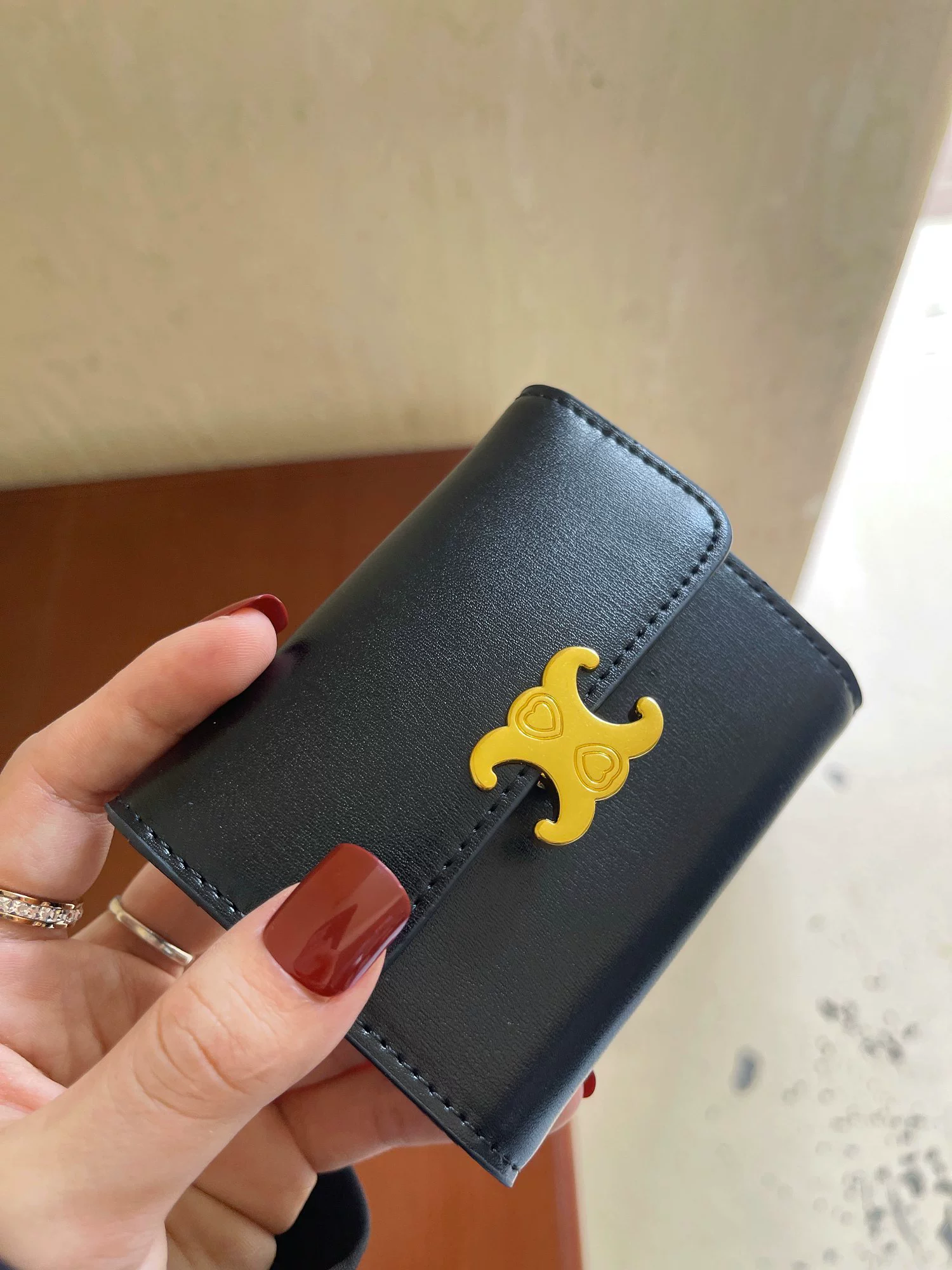 | nameOriginal | Genuine leather retro card holder wallet Arc de Triomphe presbyopic short clip multi-card slot buckle card holder coin purse integrated and durable |