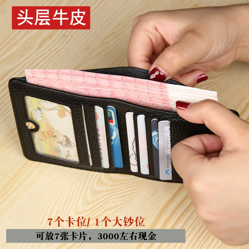 | nameOriginal | Genuine leather short wallet for women 2024 new European and American big-name folding buckle wallet multi-card slot ultra-thin cowhide small bag |
