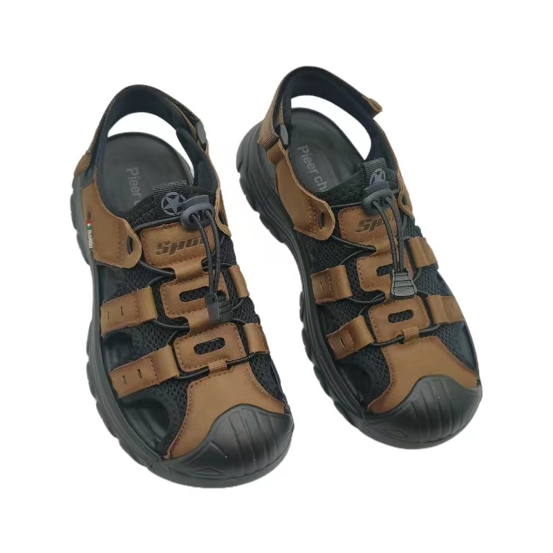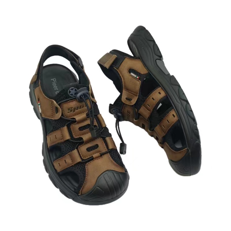 Genuine Leather Slippers Summer Beach Shoes Men’s Genuine Leather Sandals Grey Brown 2024 New Explosions