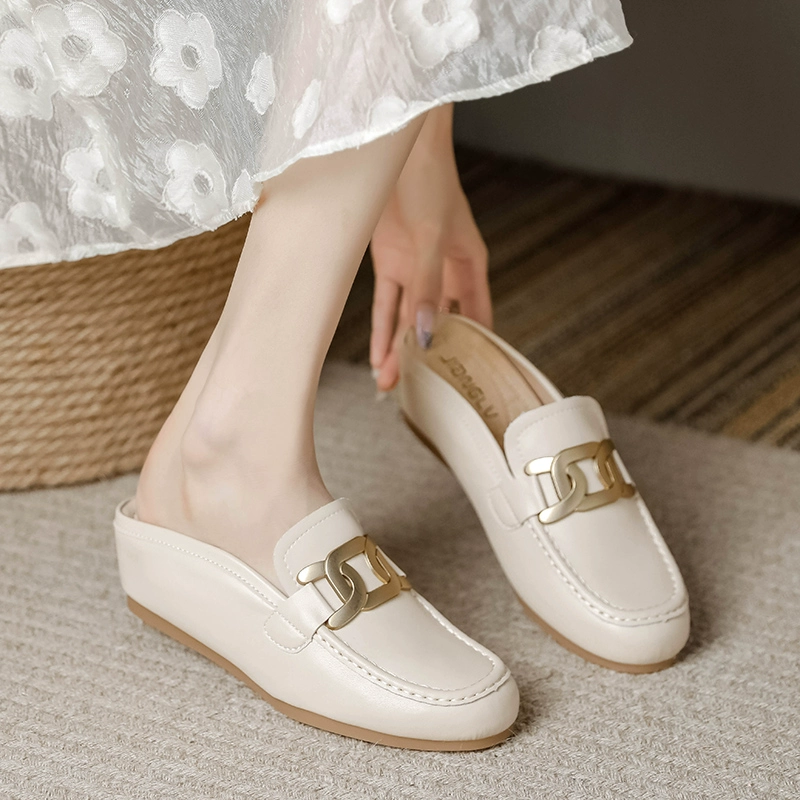 | nameOriginal | Genuine leather toe-toe heightening fashionable mid-heel half slippers |