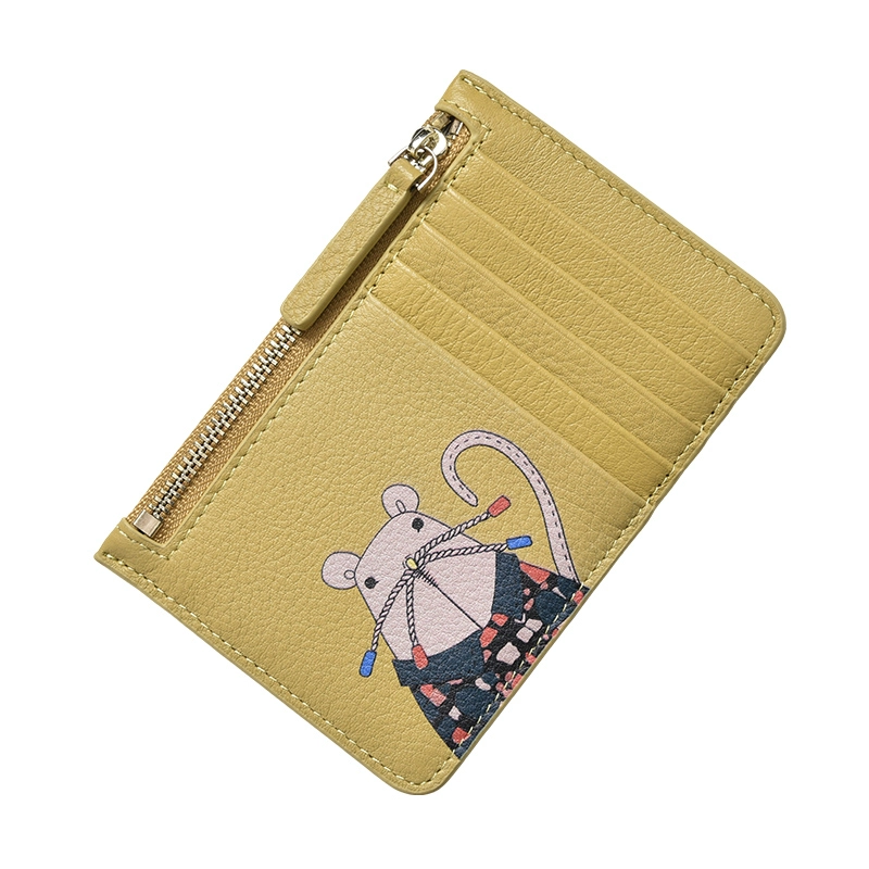 Genuine leather ultra-thin compact card holder Genuine leather women's mini multi-card slot bank card holder printed driver's license holder zipper coin purse