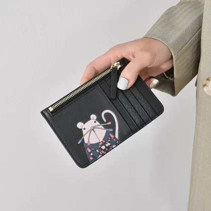 Temporary ultra -thin small coincident card leather female bloggers multi -card bank card cover printed driver’s license coip zipper coin purse