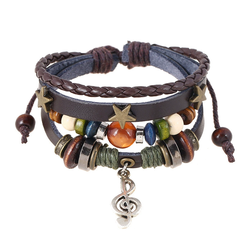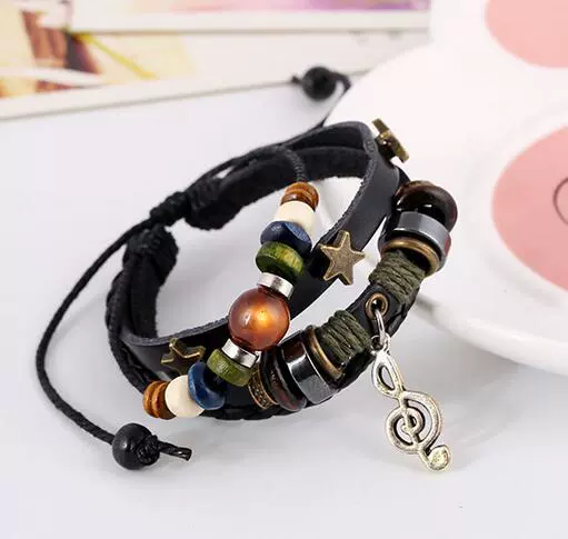 | nameOriginal | Genuine leather vintage bracelet with alloy musical notes beads |