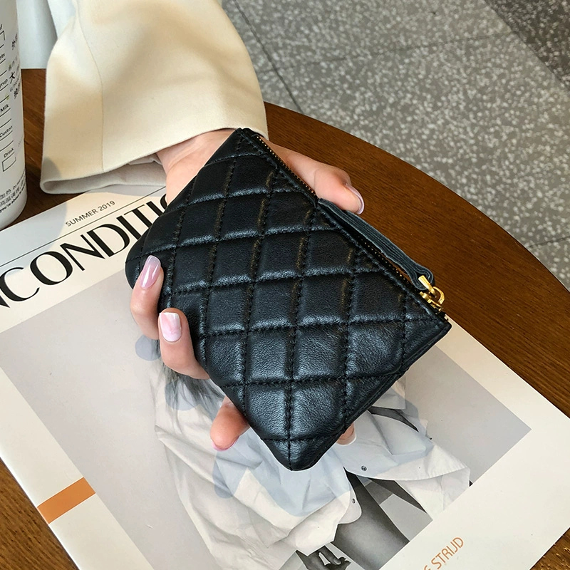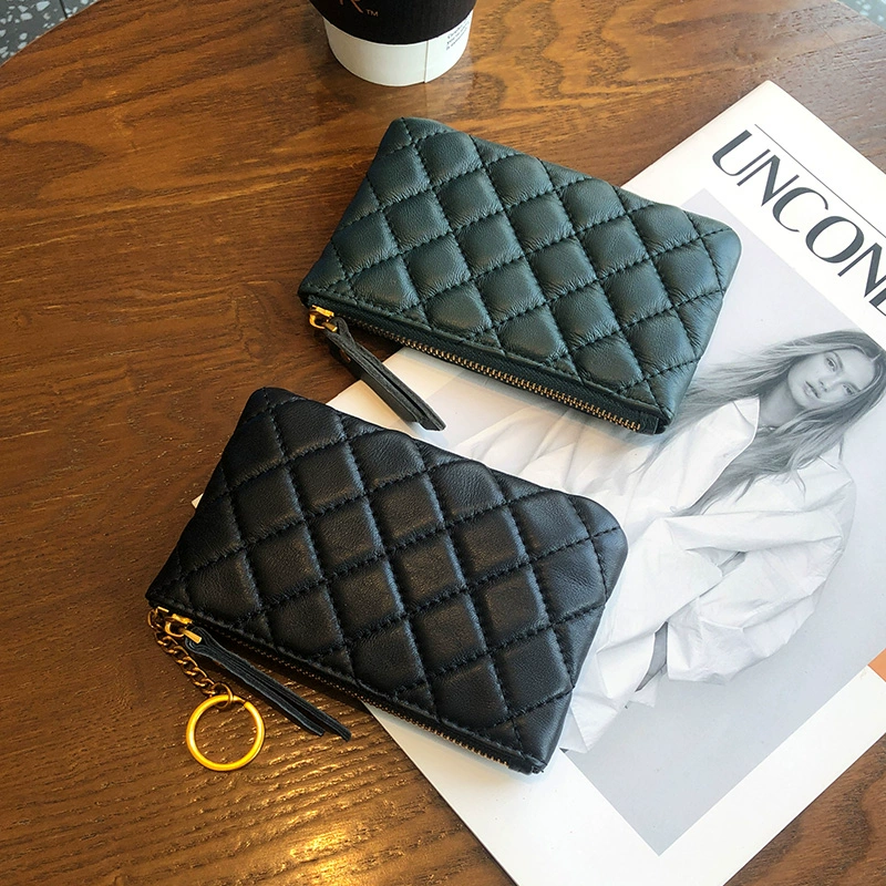 | nameOriginal | Genuine leather wallet for women short diamond soft sheepskin coin purse coin bag horizontal zipper key bag card slot |