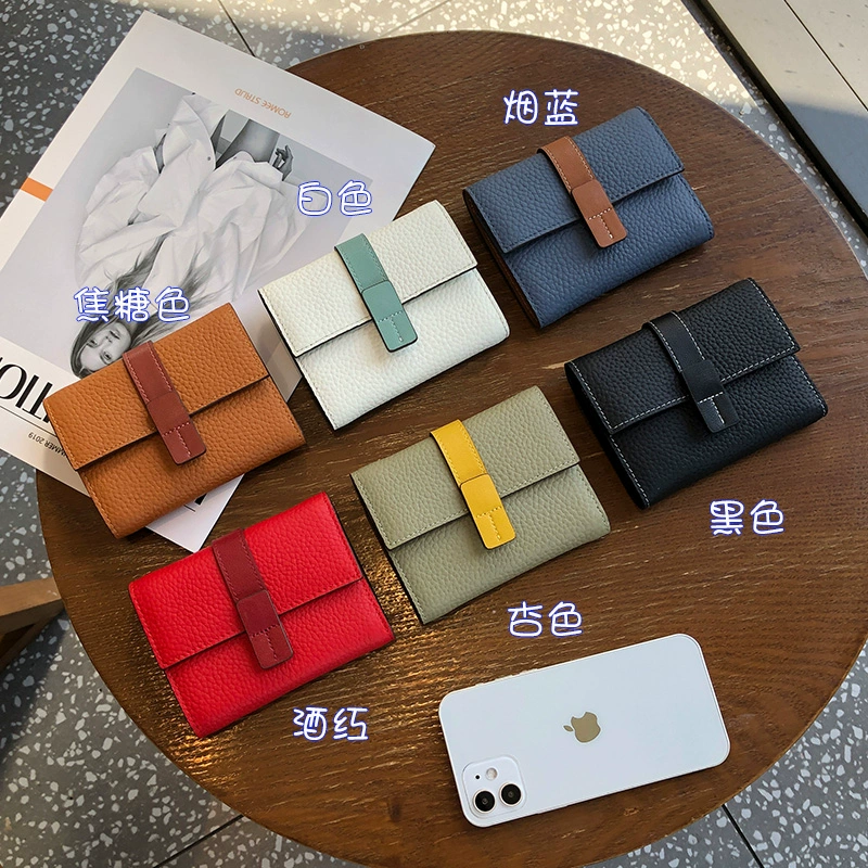 | nameOriginal | Genuine leather wallet women's short style contrasting color first layer cowhide three-fold wallet multi-card slot horizontal buckle 2024 new style |