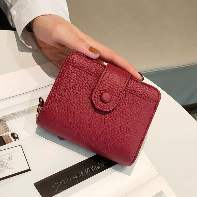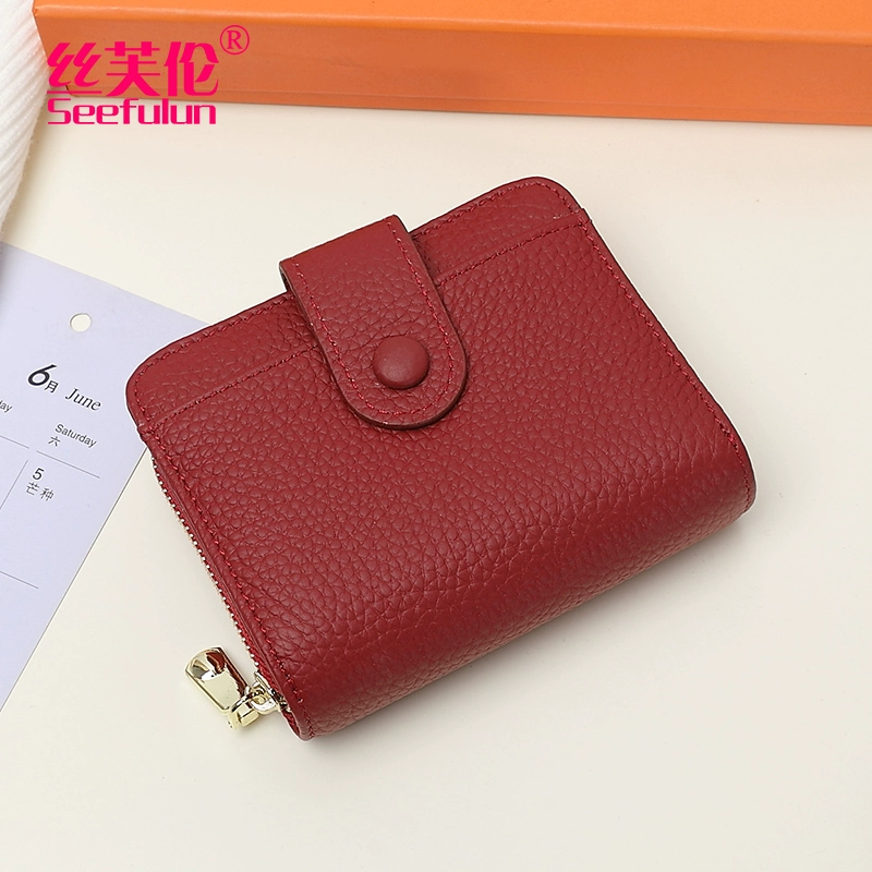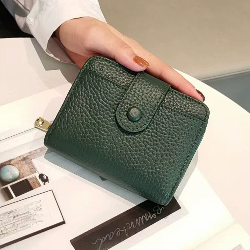 Genuine leather wallet women’s short style trendy 2024 new zipper two-fold leather wallet fashionable Korean style trendy small wallet simple
