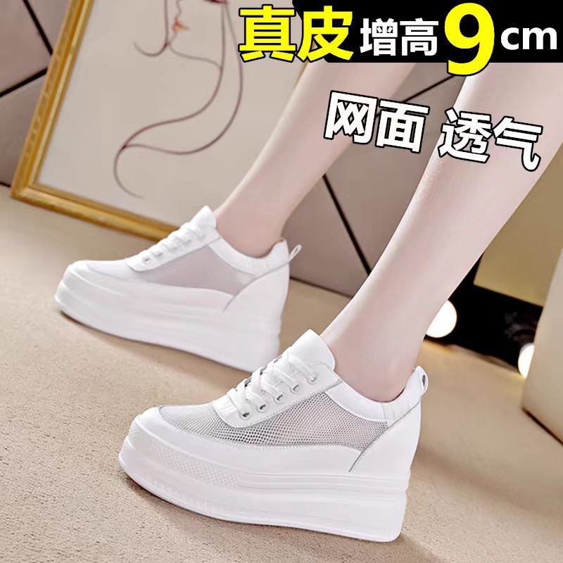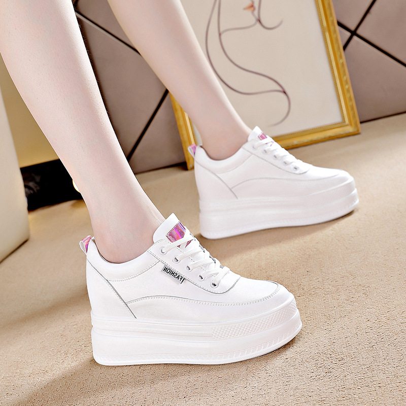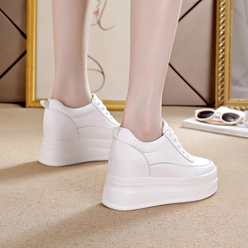 Genuine Leather White Shoes Women's Inner Shoes Platform Shoes 2024 New All-match Slimming Casual White Travel Shoes