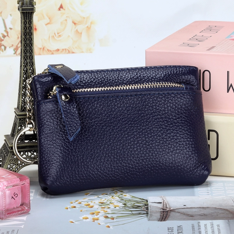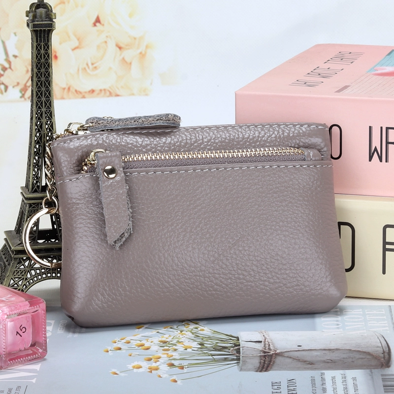 Genuine leather women’s ultra-thin simple mini key chain coin purse