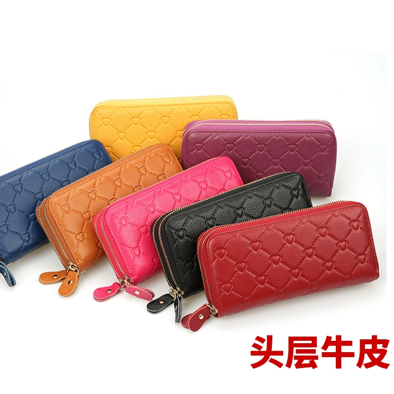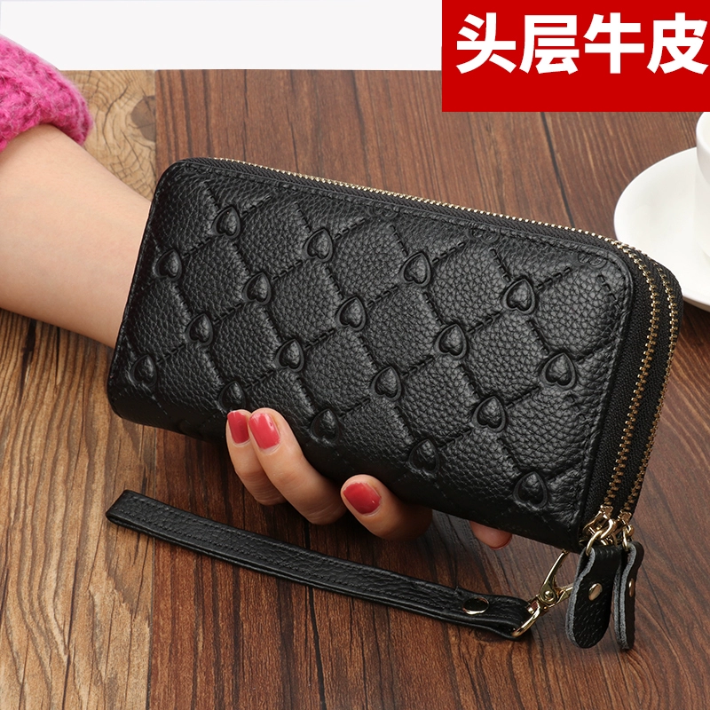 Genuine Leather Women's Wallet 2024 New Fashion Clutch Long Double Zipper Wallet Double Layer Large Capacity Clutch Bag
